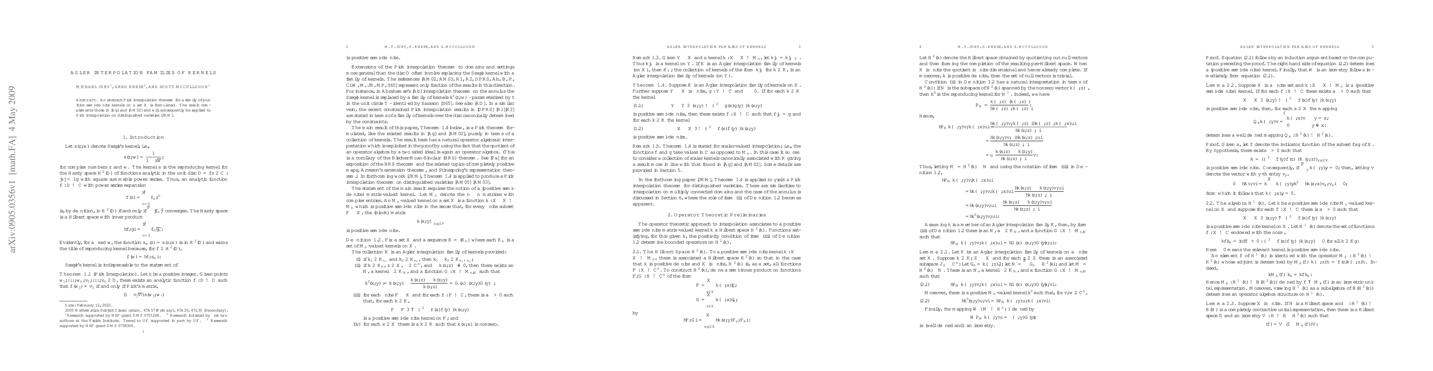 This paper formulates an abstract Pick interpolation theorem for families of positive semi-definite kernels on a set $X$, complementing previous results in \cite{Ag} and \cite{AMbook}, and aims to apply it to Pick interpolation on distinguished varieties \cite{JKM}.