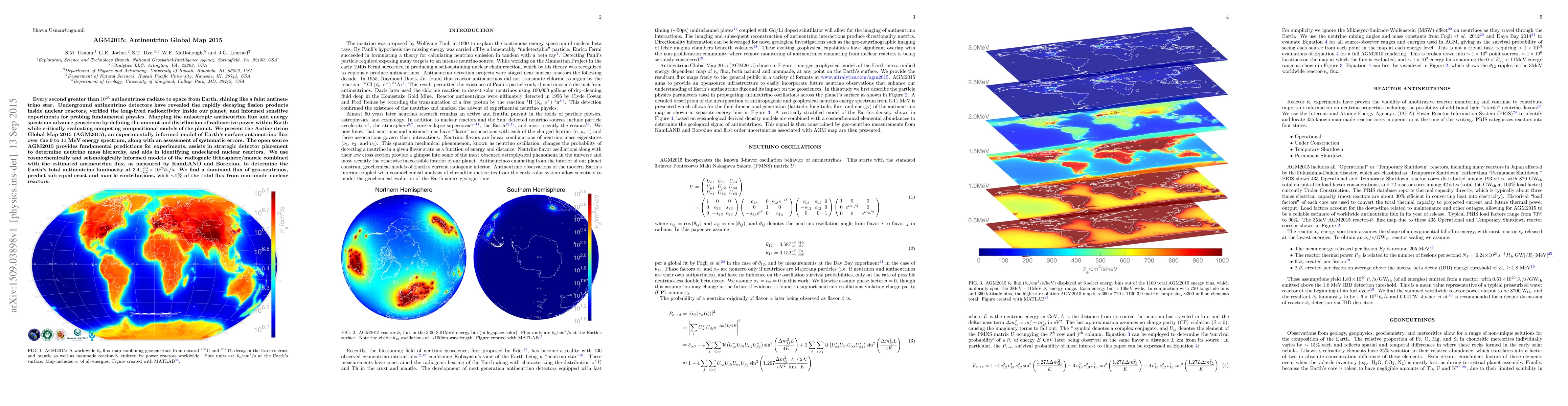 Every second greater than $10^{25}$ antineutrinos radiate to space from Earth, shining like a faint antineutrino star. Underground antineutrino detectors have revealed the rapidly decaying fission products inside nuclear reactors, verified the long-lived radioactivity inside our planet, and informed sensitive experiments for probing fundamental physics. Mapping the anisotropic antineutrino flux and energy spectrum advance geoscience by defining the amount and distribution of radioactive power within Earth while critically evaluating competing compositional models of the planet. We present the Antineutrino Global Map 2015 (AGM2015), an experimentally informed model of Earth's surface antineutrino flux over the 0 to 11 MeV energy spectrum, along with an assessment of systematic errors. The open source AGM2015 provides fundamental predictions for experiments, assists in strategic detector placement to determine neutrino mass hierarchy, and aids in identifying undeclared nuclear reactors. We use cosmochemically and seismologically informed models of the radiogenic lithosphere/mantle combined with the estimated antineutrino flux, as measured by KamLAND and Borexino, to determine the Earth's total antineutrino luminosity at $3.4^{+2.3}_{-2.2} \times 10^{25} \bar{\nu}_e$. We find a dominant flux of geo-neutrinos, predict sub-equal crust and mantle contributions, with $\sim1\%$ of the total flux from man-made nuclear reactors.
