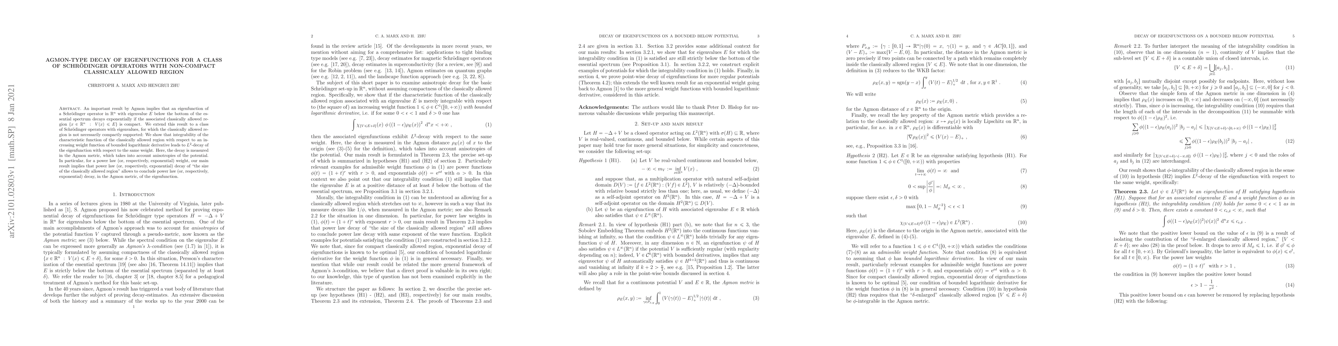 A study extends Agmon's result on Schrödinger operators to non-compact classically allowed regions, showing that integrability of the region's characteristic function with a specific weight leads to $L^2$-decay of eigenfunctions in the Agmon metric.
