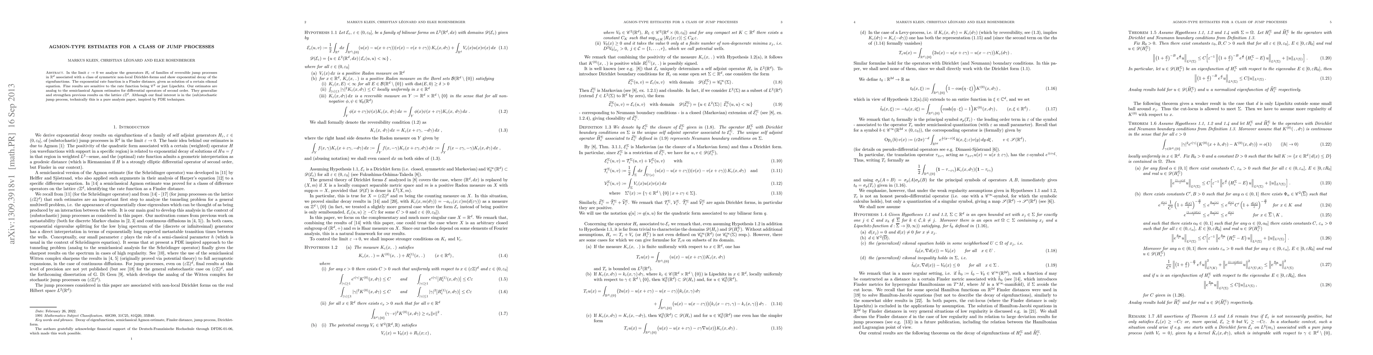 In the limit epsilon to 0 we analyze the generators H_epsilon of families of reversible jump processes in R^d associated with a class of symmetric non-local Dirichlet-forms and show exponential decay of the eigenfunctions. The exponential rate function is a Finsler distance, given as solution of a certain eikonal equation. Fine results are sensitive to the rate function being C^2 or just Lipschitz. Our estimates are analog to the semi-classical Agmon estimates for differential operators of second order. They generalize and strengthen previous results on the lattice epsilon Z^d. Although our final interest is in the (sub)stochastic jump process, technically this is a pure analysis paper, inspired by PDE techniques.