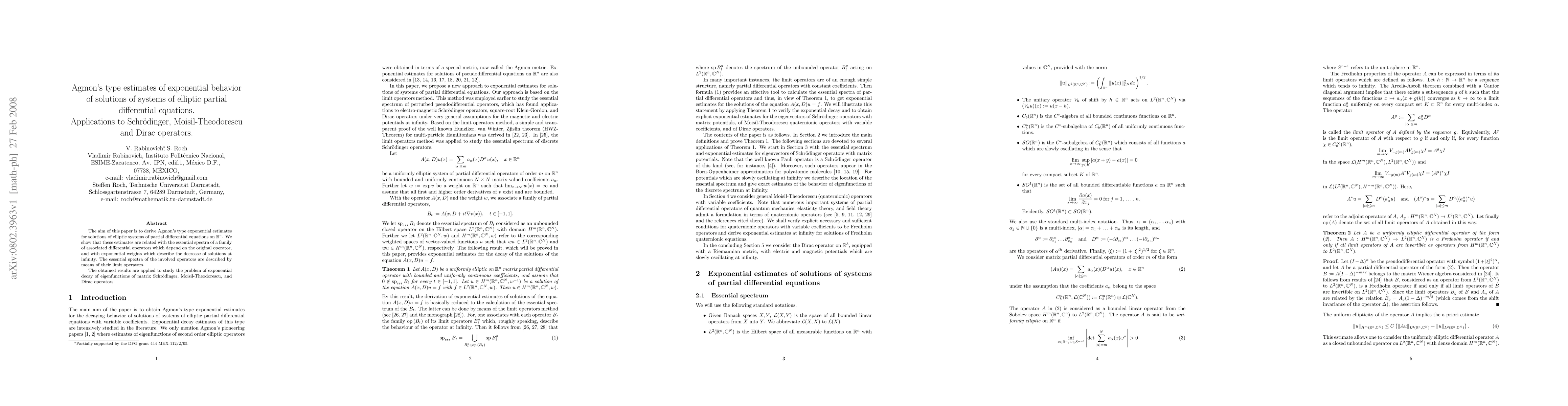 The aim of this paper is to derive Agmon's type exponential estimates for solutions of elliptic systems of partial differential equations on $\sR^n$. We show that these estimates are related with the essential spectra of a family of associated differential operators which depend on the original operator, and with exponential weights which describe the decrease of solutions at infinity. The essential spectra of the involved operators are described by means of their limit operators. The obtained results are applied to study the problem of exponential decay of eigenfunctions of matrix Schr\"{o}dinger, Moisil-Theodorescu, and Dirac operators.