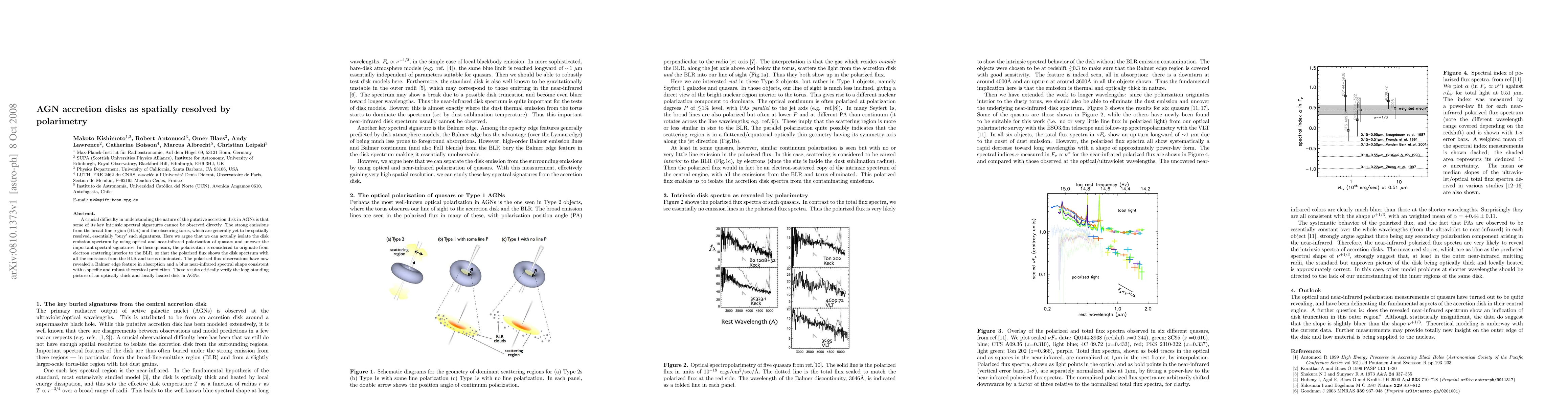A crucial difficulty in understanding the nature of the putative accretion disk in AGNs is that some of its key intrinsic spectral signatures cannot be observed directly. The strong emissions from the broad-line region (BLR) and the obscuring torus, which are generally yet to be spatially resolved, essentially 'bury' such signatures. Here we argue that we can actually isolate the disk emission spectrum by using optical and near-infrared polarization of quasars and uncover the important spectral signatures. In these quasars, the polarization is considered to originate from electron scattering interior to the BLR, so that the polarized flux shows the disk spectrum with all the emissions from the BLR and torus eliminated. The polarized flux observations have now revealed a Balmer edge feature in absorption and a blue near-infrared spectral shape consistent with a specific and robust theoretical prediction. These results critically verify the long-standing picture of an optically thick and locally heated disk in AGNs.