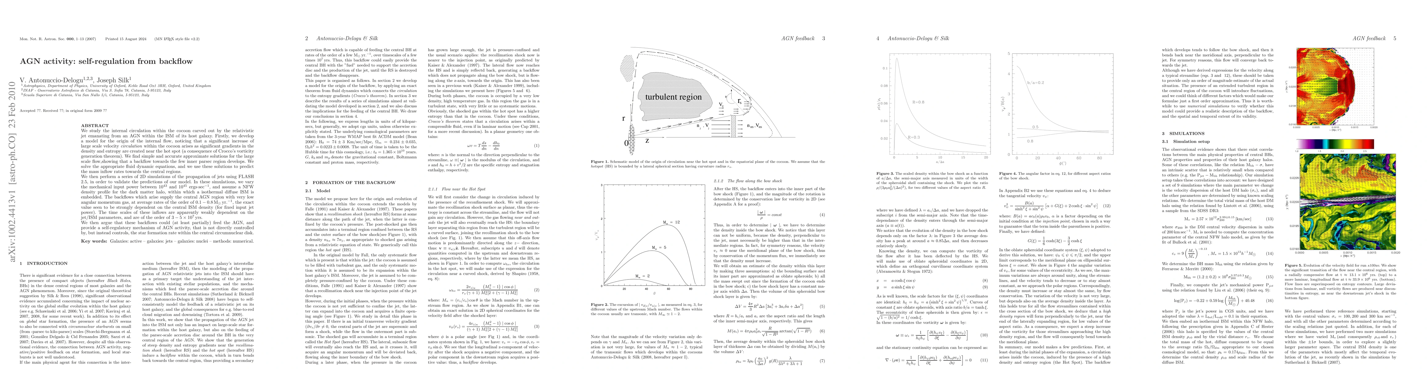 We study the internal circulation within the cocoon carved out by the relativistic jet emanating from an AGN within the ISM of its host galaxy. Firstly, we develop a model for the origin of the internal flow, noticing that a significant increase of large scale velocity circulation within the cocoon arises as significant gradients in the density and entropy are created near the hot spot (a consequence of Crocco's vorticity generation theorem). We find simple and accurate approximate solutions for the large scale flow,showing that a backflow towards the few inner parsec region develops. We solve the appropriate fluid dynamic equations, and we use these solutions to predict the mass inflow rates towards the central regions. We then perform a series of 2D simulations of the propagation of jets using FLASH 2.5, in order to validate the predictions of our model. The backflows which arise supply the central AGN region with very low angular momentum gas, at average rates of the order of $0.1-0.8 \rm{M}_{\odot} \rm{yr.}^{-1}$, the exact value seen to be strongly dependent on the central ISM density (for fixed input jet power). The time scales of these inflows are apparently weakly dependent on the jet/ISM parameters, and are of the order of $3-5\times 10^{7} \rm{yrs}$. We then argue that these backflows could (at least partially) feed the AGN, and provide a self-regulatory mechanism of AGN activity, that is not directly controlled by, but instead controls, the star formation rate within the central circumnuclear disk.