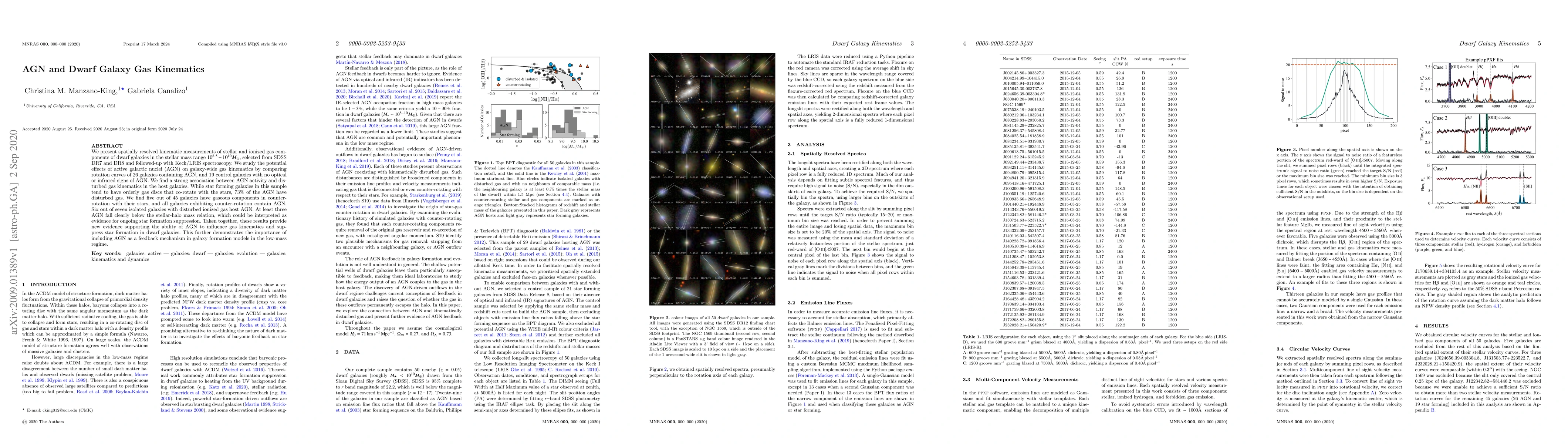 The study presents spatially resolved kinematic measurements of stellar and ionized gas components of dwarf galaxies using SDSS DR7 and DR8, followed by Keck/LRIS spectroscopy. It compares rotation curves of 26 galaxies with AGN and 19 control galaxies without AGN signs.