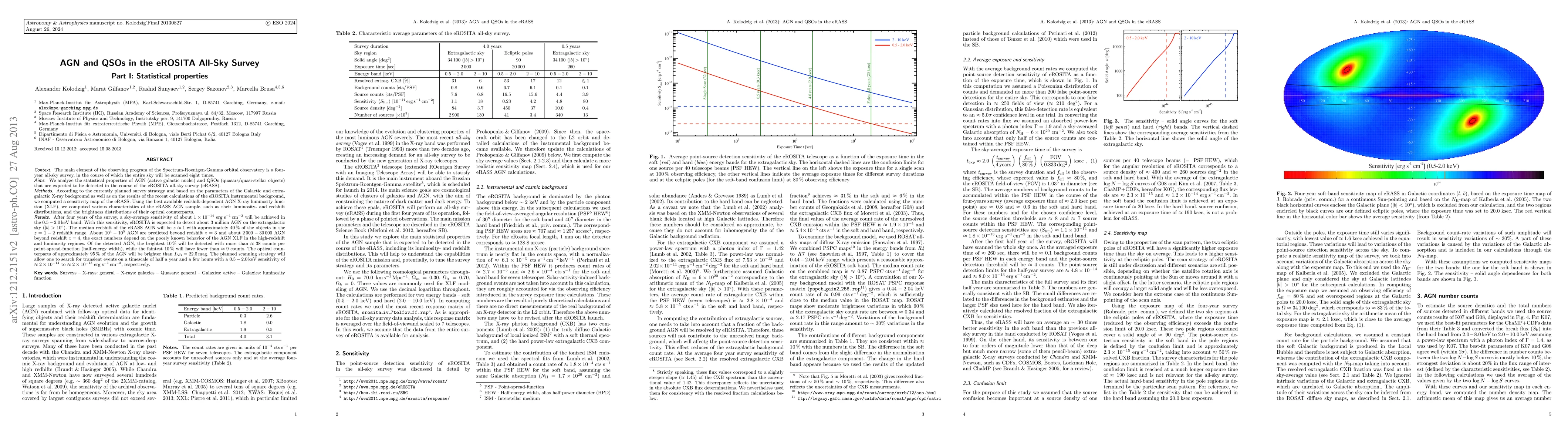 Context. The main element of the observing program of the Spectrum-Roentgen-Gamma orbital observatory is a four-year all-sky survey, in the course of which the entire sky will be scanned eight times. Aims. We analyze the statistical properties of AGN and QSOs that are expected to be detected in the course of the eROSITA all-sky survey (eRASS). Methods. According to the currently planned survey strategy and based on the parameters of the Galactic and extragalactic X-ray background as well as on the results of the recent calculations of the eROSITA instrumental background, we computed a sensitivity map of the eRASS. Using the best available redshift-dependent AGN X-ray luminosity function (XLF), we computed various characteristics of the eRASS AGN sample, such as their luminosity- and redshift distributions, and the brightness distributions of their optical counterparts. Results. After four years of the survey, a sky-average sensitivity of ~1x10^(-14) erg/s/cm^2 will be achieved in the 0.5-2.0keV band. With this sensitivity, eROSITA is expected to detect ~3 million AGN on the extragalactic sky (|b|>10deg). The median redshift of the eRASS AGN will be z~1 with ~40% of the objects in the z=1-2 redshift range. About 10^4 - 10^5 AGN are predicted beyond redshift z=3 and about 2 000 - 30 000 AGN beyond redshift z=4, the exact numbers depend on the poorly known behavior of the AGN XLF in the high-redshift and luminosity regimes. Of the detected AGN, the brightest 10% will be detected with more than ~38 counts per PSF HEW, while the faintest 10% will have fewer than ~9 counts. The optical counterparts of ~95% of the AGN will be brighter than I_(AB)=22.5mag. The planned scanning strategy will allow one to search for transient events on a timescale of half a year and a few hours with a 0.5-2.0keV sensitivity of ~2x10^(-14) to ~2x10^(-13) erg/s/cm^2, respectively.