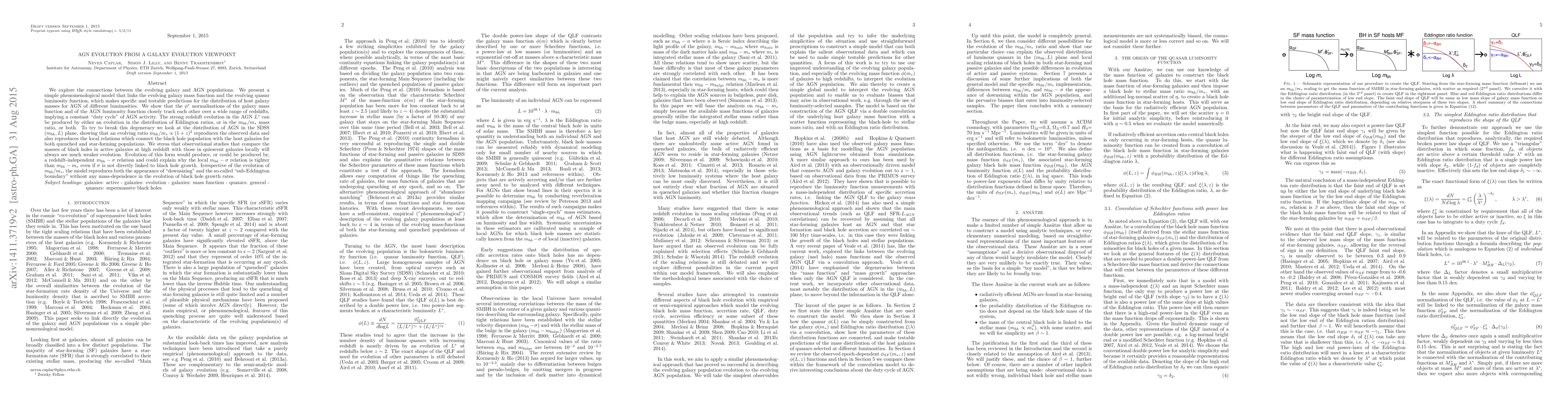 A model links galaxy mass evolution to AGN luminosity, predicting a constant duty cycle and showing that black hole mass growth rates may evolve independently of host galaxy mass.