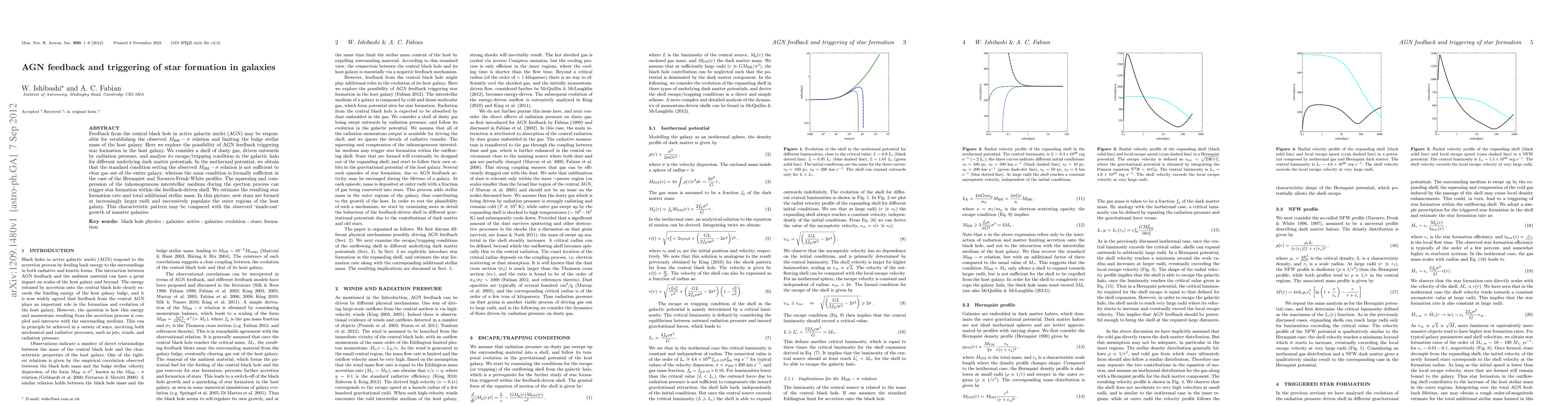 This paper explores how AGN feedback might trigger star formation in galaxies, finding that while the standard feedback condition may not expel all gas in an isothermal potential, it can in Hernquist and Navarro-Frenk-White profiles. The compression of interstellar medium during ejection can lead to star formation in the feedback-driven shell, potentially explaining the 'inside-out' growth of massive galaxies.
