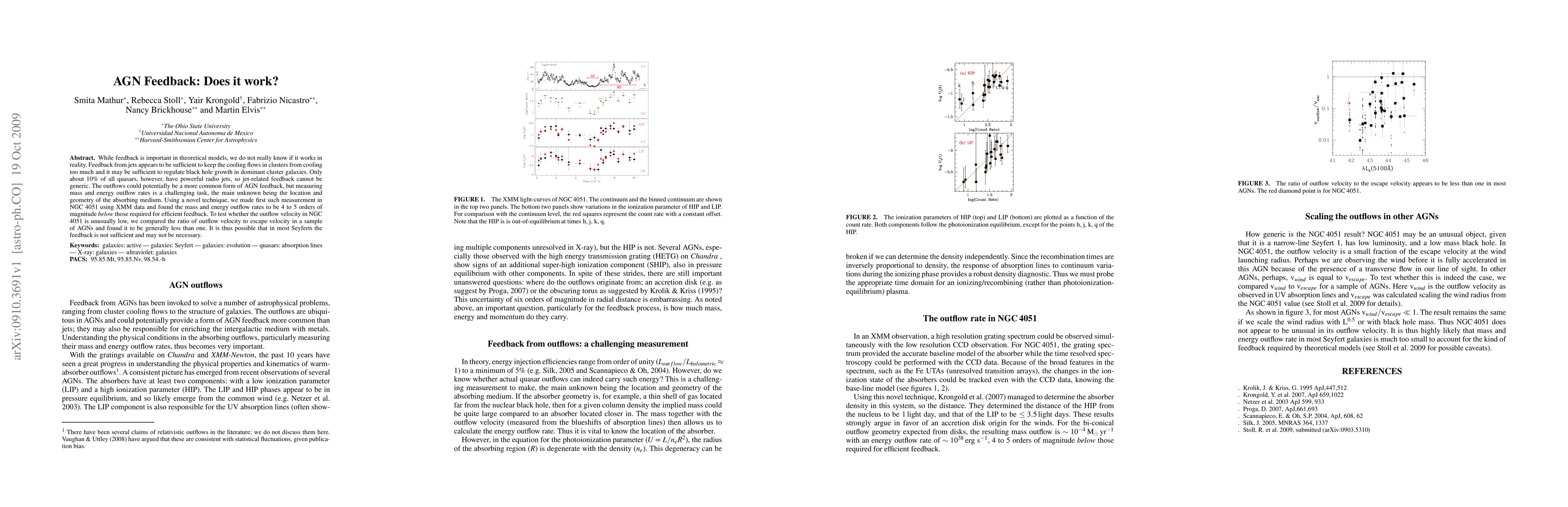 The research presents the first measurement of mass and energy outflow rates in an AGN (NGC 4051) using XMM data, revealing significantly lower rates than previously assumed for efficient feedback.