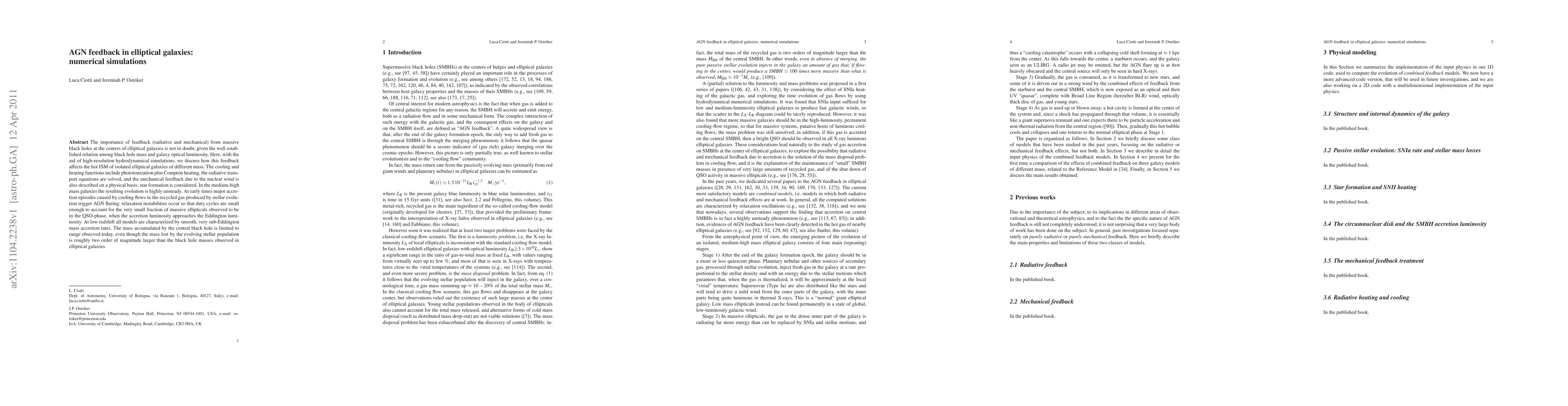 This paper uses high-resolution simulations to explore the impact of AGN feedback from massive black holes on the hot interstellar medium (ISM) in elliptical galaxies. The study finds that in medium-high mass galaxies, AGN activity is highly unsteady, with small duty cycles explaining the rarity of QSO-phase ellipticals, while low redshift galaxies exhibit smooth, sub-Eddington accretion rates.