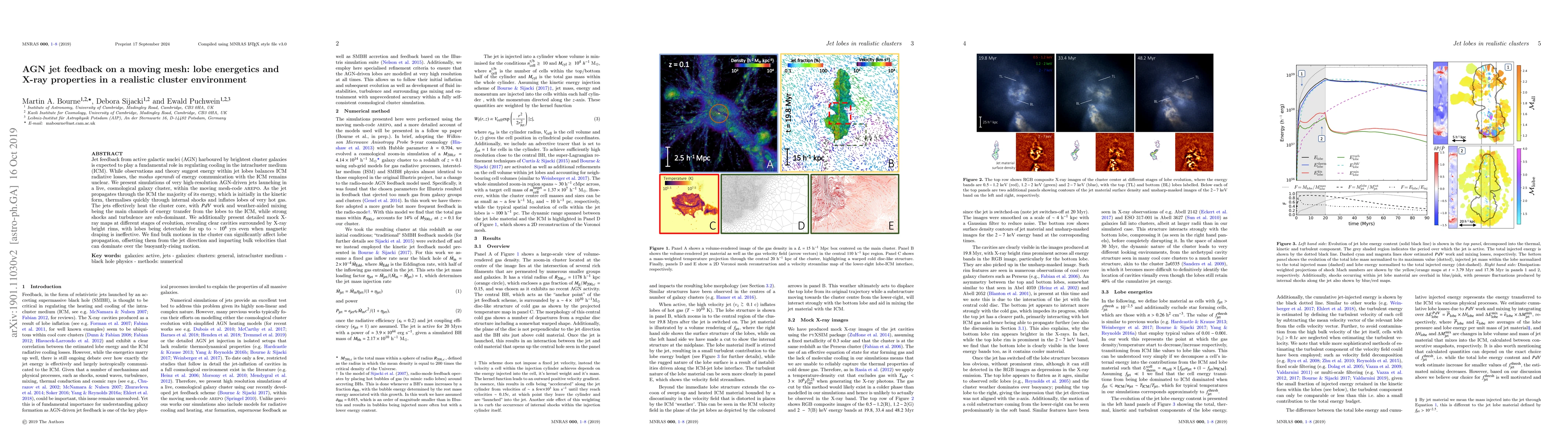 Jet feedback from active galactic nuclei (AGN) harboured by brightest cluster galaxies is expected to play a fundamental role in regulating cooling in the intracluster medium (ICM). While observations and theory suggest energy within jet lobes balances ICM radiative losses, the modus operandi of energy communication with the ICM remains unclear. We present simulations of very high resolution AGN-driven jets launching in a live, cosmological galaxy cluster, within the moving mesh code AREPO. As the jet propagates through the ICM the majority of its energy, which is initially in the kinetic form, thermalizes quickly through internal shocks and inflates lobes of very hot gas. The jets effectively heat the cluster core, with $PdV$ work and weather-aided mixing being the main channels of energy transfer from the lobes to the ICM, while strong shocks and turbulence are subdominant. We additionally present detailed mock X-ray maps at different stages of evolution, revealing clear cavities surrounded by X-ray bright rims, with lobes being detectable for up to $\sim 10^8$ yr even when magnetic draping is ineffective. We find bulk motions in the cluster can significantly affect lobe propagation, offsetting them from the jet direction and imparting bulk velocities that can dominate over the buoyantly rising motion.