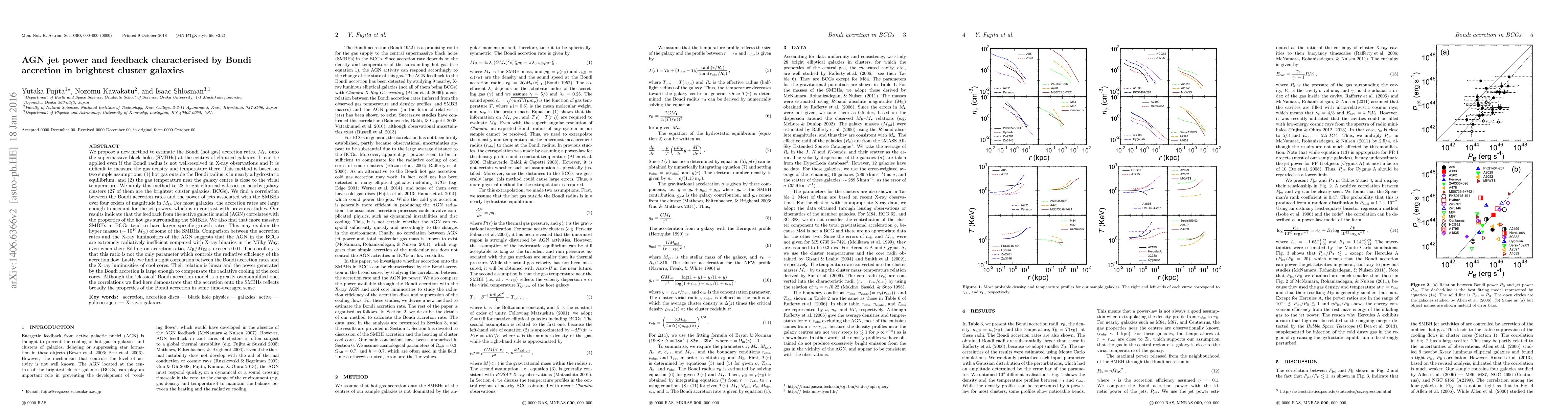 This research introduces a novel method to estimate Bondi accretion rates in elliptical galaxies, uncovering a correlation between these rates and jet powers. Applied to 28 bright elliptical galaxies, it finds that most accretion rates can account for jet powers, indicating AGN feedback relates to surrounding hot gas. The study also reveals more massive SMBHs in BCGs have larger growth rates, potentially explaining their hyper masses. Lastly, it highlights an inefficient radiative process in BCG AGN compared to Milky Way X-ray binaries and a tight correlation between Bondi accretion rates and X-ray luminosities of cool cores, suggesting the former can counteract the latter's cooling.