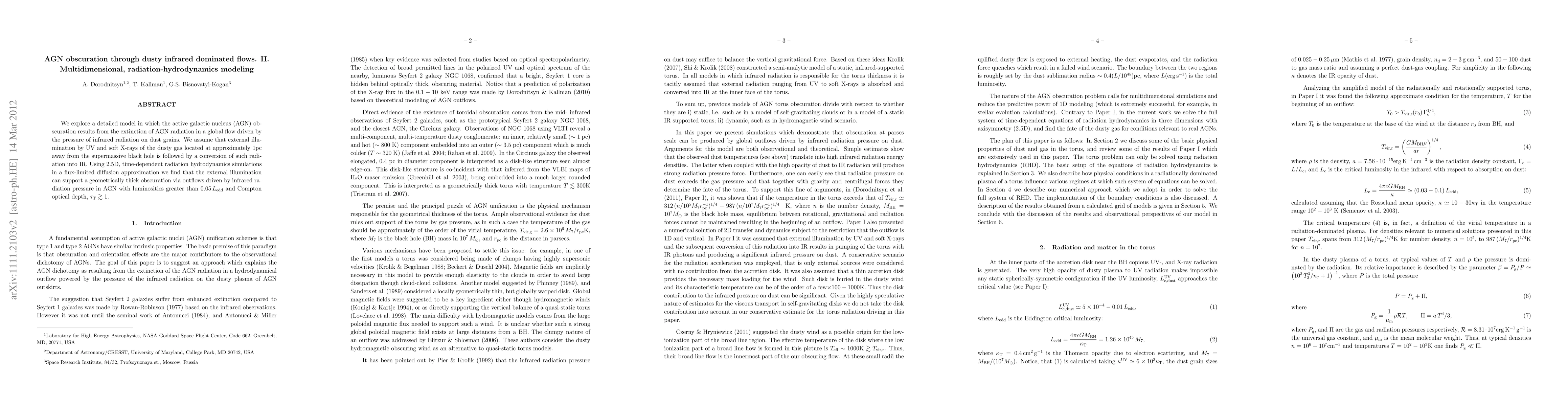 This paper investigates a model where AGN obscuration is caused by the extinction of radiation in a dusty flow driven by infrared radiation pressure. It uses 2.5D, time-dependent radiation hydrodynamics simulations to show that external illumination can sustain thick obscuration outflows in AGN with luminosities above $0.05\, L_{\rm edd}$ and Compton optical depths greater than 1.