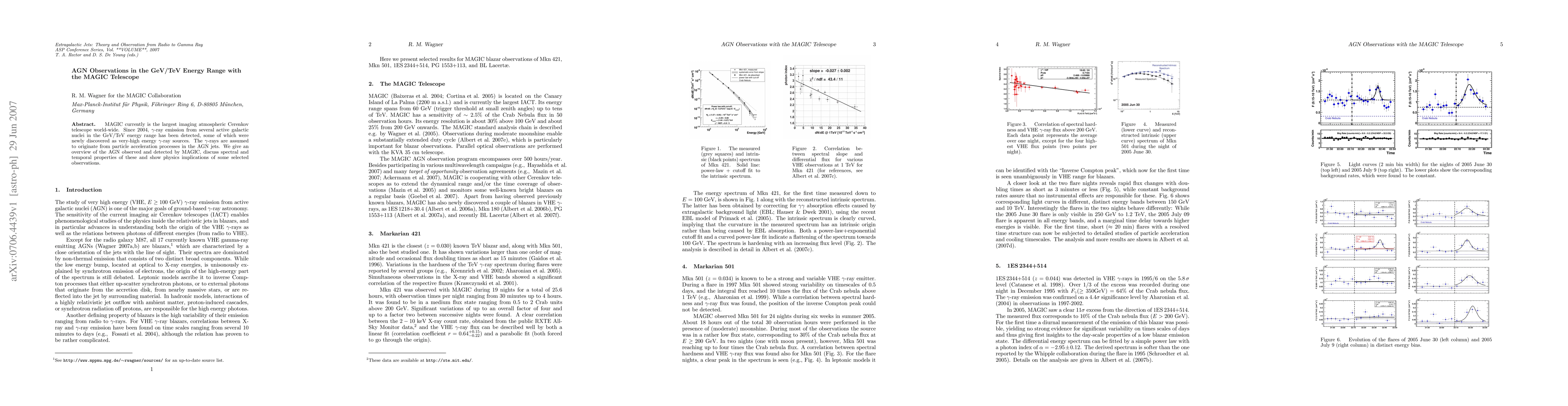 MAGIC currently is the largest imaging atmospheric Cerenkov telescope world-wide. Since 2004, gamma-ray emission from several active galactic nuclei in the GeV/TeV energy range has been detected, some of which were newly discovered as very-high energy gamma-ray sources. The gamma-rays are assumed to originate from particle acceleration processes in the AGN jets. We give an overview of the AGN observed and detected by MAGIC, discuss spectral and temporal properties of these and show physics implications of some selected observations.