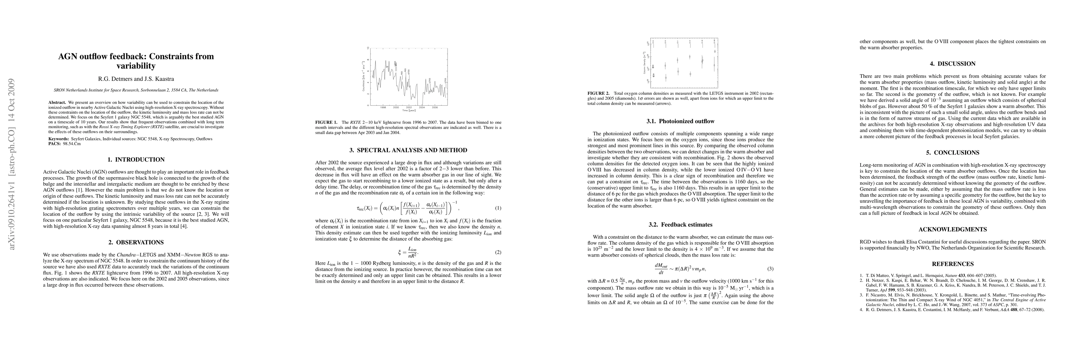 We present an overview on how variability can be used to constrain the location of the ionized outflow in nearby Active Galactic Nuclei using high-resolution X-ray spectroscopy. Without these constraints on the location of the outflow, the kinetic luminosity and mass loss rate can not be determined. We focus on the Seyfert 1 galaxy NGC 5548, which is arguably the best studied AGN on a timescale of 10 years. Our results show that frequent observations combined with long term monitoring, such as with the \textit{Rossi X-ray Timing Explorer (RXTE)} satellite, are crucial to investigate the effects of these outflows on their surroundings.