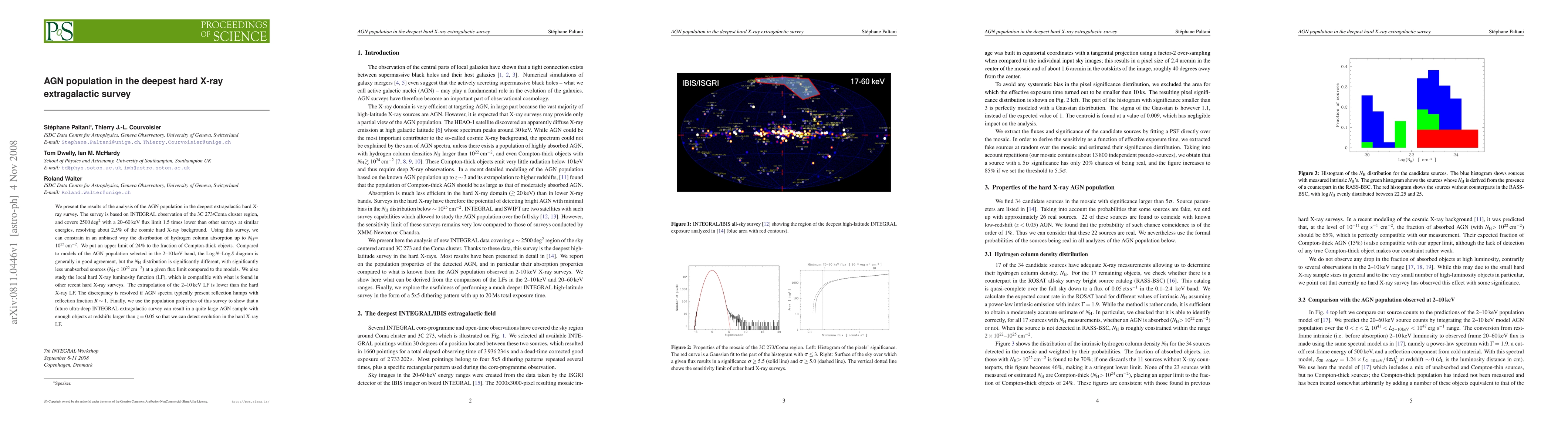 This study analyzes the AGN population in the deepest hard X-ray survey conducted with INTEGRAL, revealing a lower fraction of Compton-thick objects and a different hydrogen column absorption distribution compared to models. The survey suggests that future ultra-deep surveys can detect AGN evolution in the hard X-ray luminosity function.