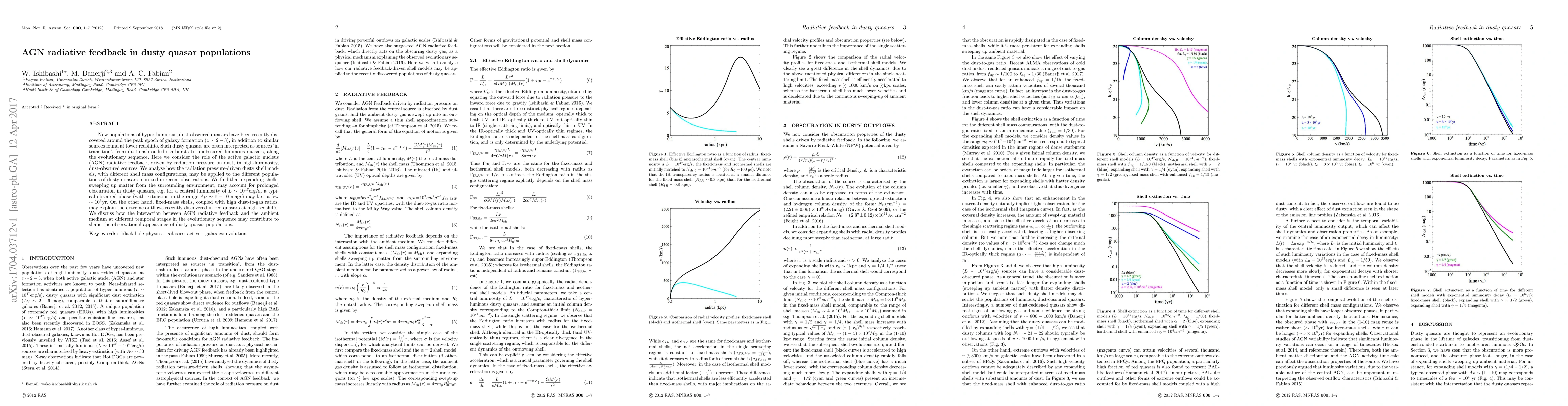 This paper explores the role of AGN radiative feedback in dusty quasar populations, suggesting that expanding shells driven by radiation pressure can prolong obscuration in high-luminosity quasars, while fixed-mass shells with high dust-to-gas ratios may explain extreme outflows in red quasars. The study highlights how AGN feedback interacts with the surrounding medium to shape the observational characteristics of these quasars.