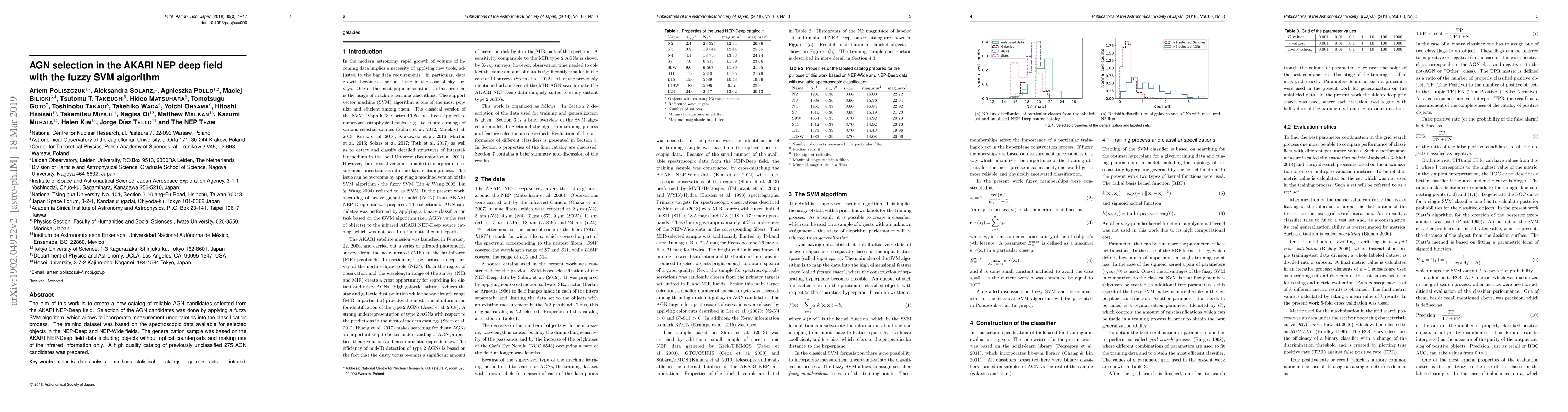 This study employs a fuzzy SVM algorithm to identify a new catalog of 275 reliable AGN candidates from the AKARI NEP-Deep field, incorporating measurement uncertainties and utilizing infrared data for objects without optical counterparts. The method leverages spectroscopic training data for classification.