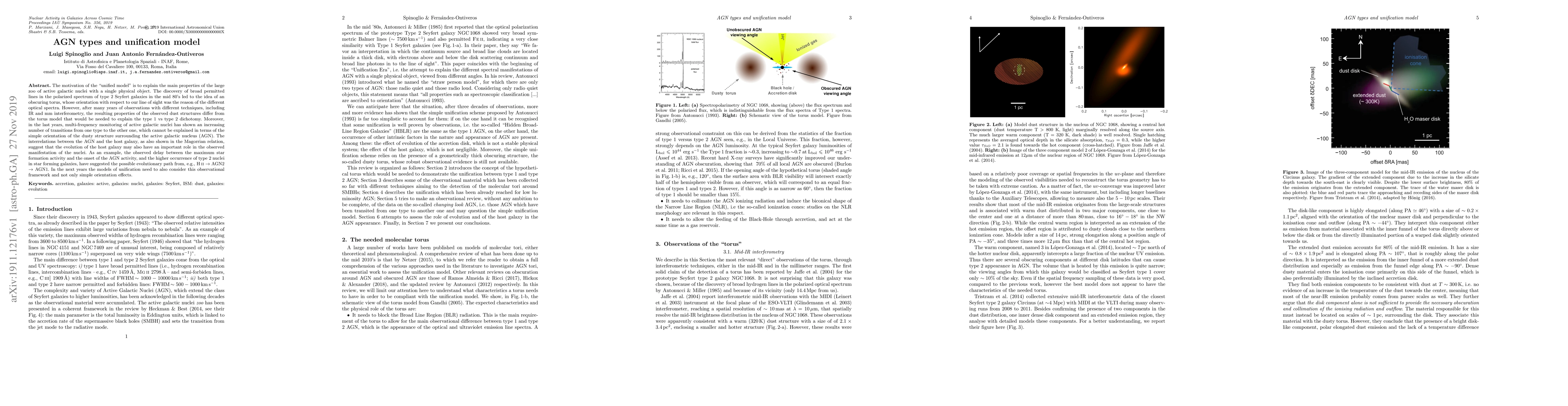 The motivation of the "unified model" is to explain the main properties of the large zoo of active galactic nuclei with a single physical object. The discovery of broad permitted lines in the polarized spectrum of type 2 Seyfert galaxies in the mid 80's led to the idea of an obscuring torus, whose orientation with respect to our line of sight was the reason of the different optical spectra. However, after many years of observations with different techniques, including IR and mm interferometry, the resulting properties of the observed dust structures differ from the torus model that would be needed to explain the type 1 vs type 2 dichotomy. Moreover, in the last years, multi-frequency monitoring of active galactic nuclei has shown an increasing number of transitions from one type to the other one, which cannot be explained in terms of the simple orientation of the dusty structure surrounding the active galactic nucleus (AGN). The interrelations between the AGN and the host galaxy, as also shown in the Magorrian relation, suggest that the evolution of the host galaxy may also have an important role in the observed manifestation of the nuclei. As an example, the observed delay between the maximum star formation activity and the onset of the AGN activity, and the higher occurrence of type 2 nuclei in star forming galaxies, have suggested the possible evolutionary path from, e.g., HII $\rightarrow$ AGN2 $\rightarrow$ AGN1. In the next years the models of unification need to also consider this observational framework and not only simple orientation effects.