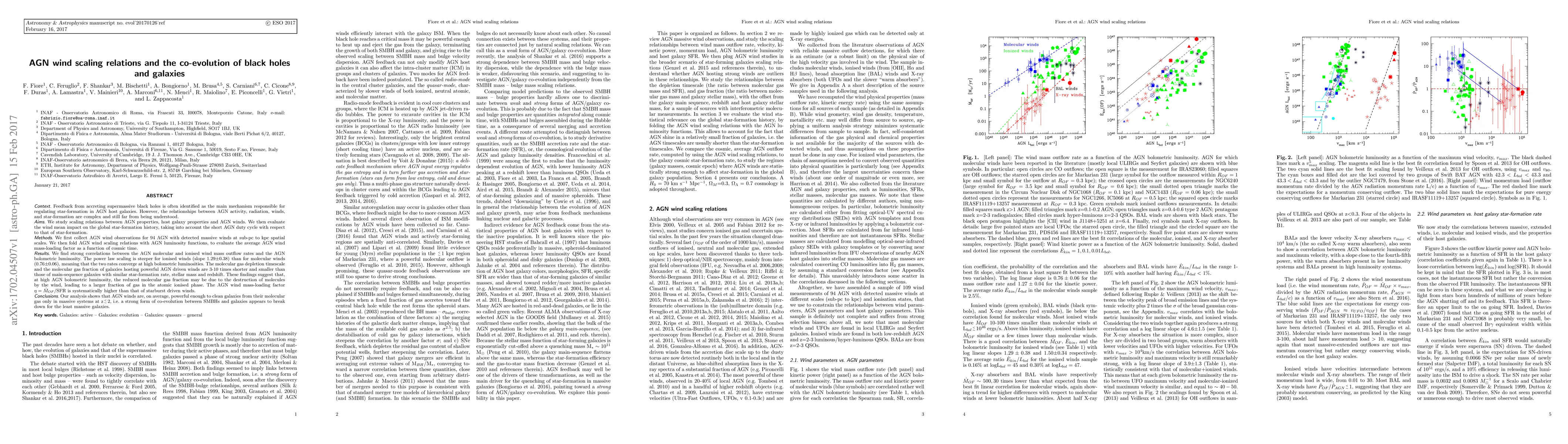 This paper investigates scaling relations between AGN properties, host galaxy characteristics, and AGN winds, finding strong correlations between AGN wind mass outflow rates and bolometric luminosity. The study concludes that AGN winds are more effective at clearing molecular gas in massive galaxies, suggesting a breakdown of co-evolution between SMBHs and galaxies in less massive systems.
