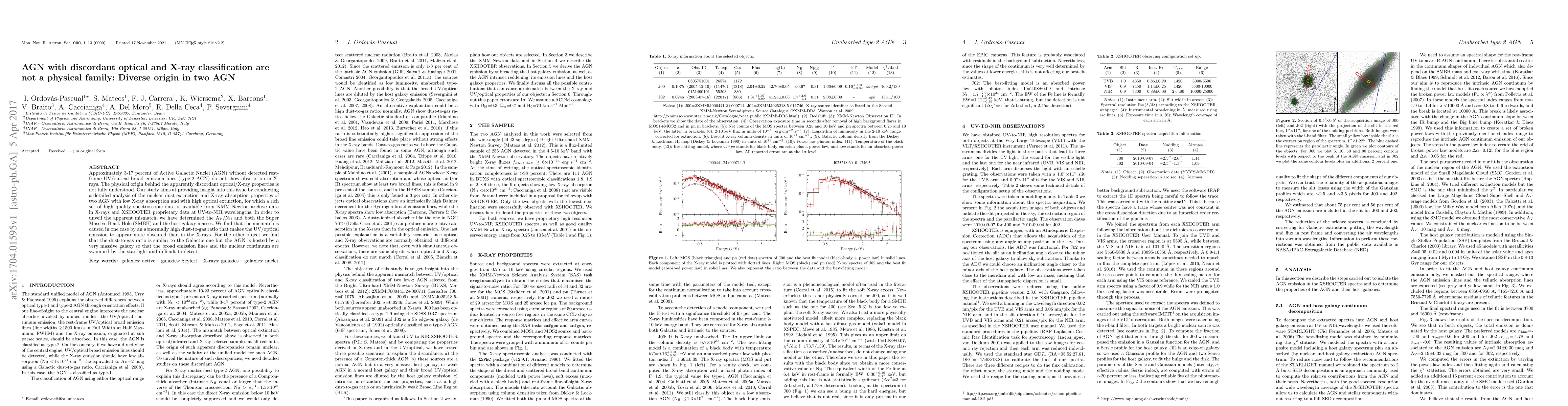 Approximately 3-17 percent of Active Galactic Nuclei (AGN) without detected rest-frame UV/optical broad emission lines (type-2 AGN) do not show absorption in X-rays. The physical origin behind the apparently discordant optical/X-ray properties is not fully understood. Our study aims at providing insight into this issue by conducting a detailed analysis of the nuclear dust extinction and X-ray absorption properties of two AGN with low X-ray absorption and with high optical extinction, for which a rich set of high quality spectroscopic data is available from XMM-Newton archive data in X-rays and XSHOOTER proprietary data at UV-to-NIR wavelengths. In order to unveil the apparent mismatch, we have determined the A$_{\rm V}$/N$_{\rm H}$ and both the Super Massive Black Hole (SMBH) and the host galaxy masses. We find that the mismatch is caused in one case by an abnormally high dust-to-gas ratio that makes the UV/optical emission to appear more obscured than in the X-rays. For the other object we find that the dust-to-gas ratio is similar to the Galactic one but the AGN is hosted by a very massive galaxy so that the broad emission lines and the nuclear continuum are swamped by the star-light and difficult to detect.