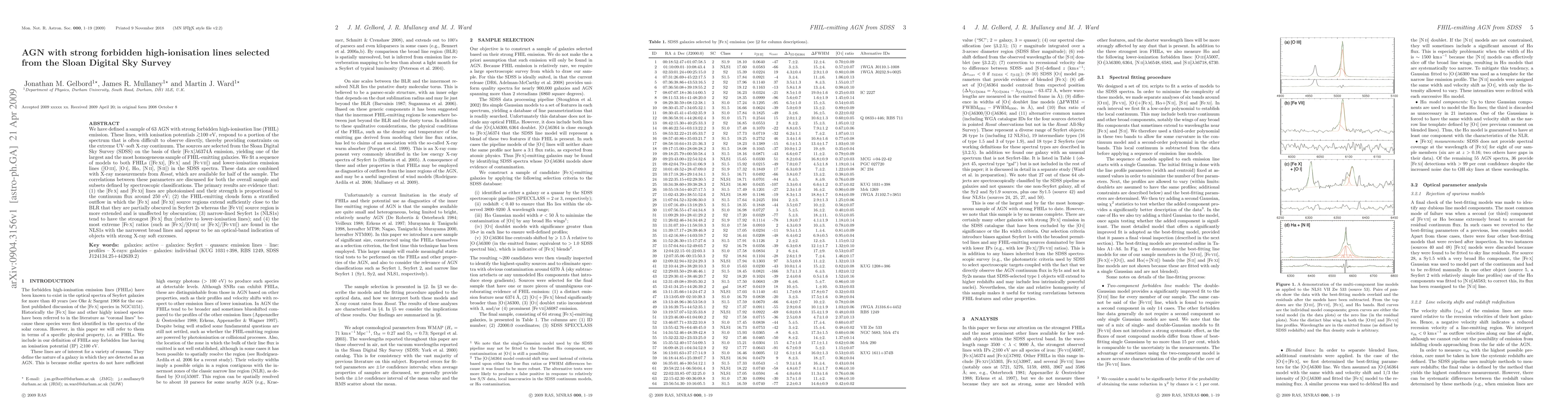 We have defined a sample of 63 AGN with strong forbidden high-ionisation line (FHIL) emission. These lines, with ionisation potentials >~ 100eV, respond to a portion of the spectrum that is often difficult to observe directly, thereby providing constraints on the EUV-soft X-ray continuum. The sources are selected from the Sloan Digital Sky Survey (SDSS) on the basis of their [Fe X]6374A emission, yielding one of the largest and the most homogeneous sample of FHIL-emitting galaxies. We fit a sequence of models to both FHILs ([Fe XI], [Fe X] and [Fe VII]) and lower-ionisation emission lines ([O III], [O I], H-alpha, [N II], [S II]) in the SDSS spectra. These data are combined with X-ray measurements from Rosat, which are available for half of the sample. The correlations between these parameters are discussed for both the overall sample and subsets defined by spectroscopic classifications. The primary results are evidence that: (1) the [Fe X] and [Fe XI] lines are photoionised and their strength is proportional to the continuum flux around 250 eV; (2) the FHIL-emitting clouds form a stratified outflow in which the [Fe X] and [Fe XI] source regions extend sufficiently close to the BLR that they are partially obscured in Seyfert 2s whereas the [Fe VII] source region is more extended and is unaffected by obscuration; (3) narrow-lined Seyfert 1s (NLS1s) tend to have the strongest [Fe X] flux (relative to lower-ionisation lines); and (4) the most extreme [Fe X] ratios (such as [Fe X]/[O III] or [Fe X]/[Fe VII]) are found in the NLS1s with the narrowest broad lines and appear to be an optical-band indication of objects with strong X-ray soft excesses.