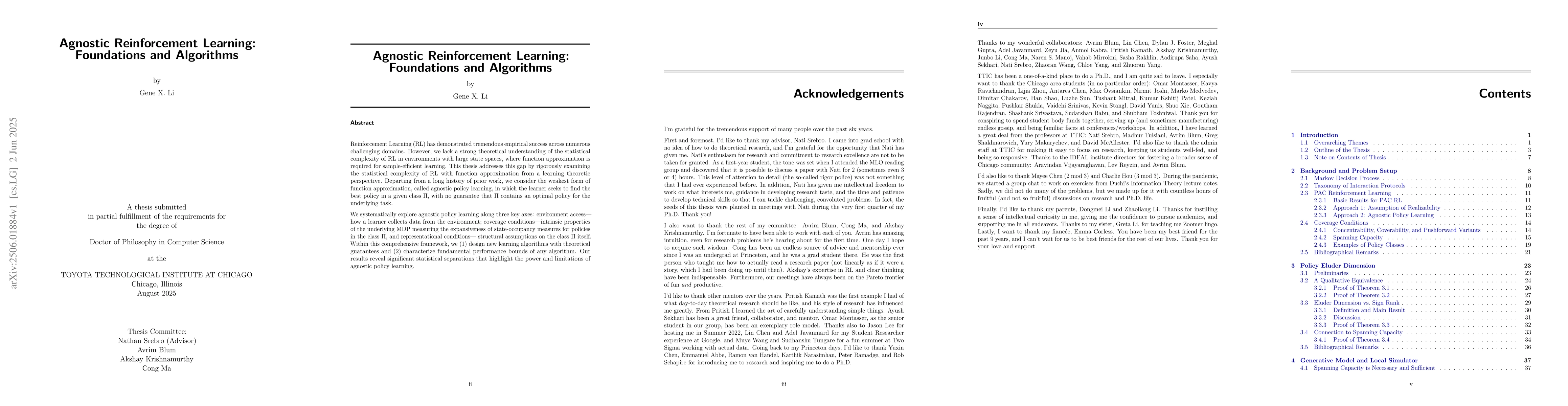 The research rigorously examines the statistical complexity of Reinforcement Learning (RL) with function approximation, focusing on agnostic policy learning without guarantees that the policy class contains an optimal policy for the task.