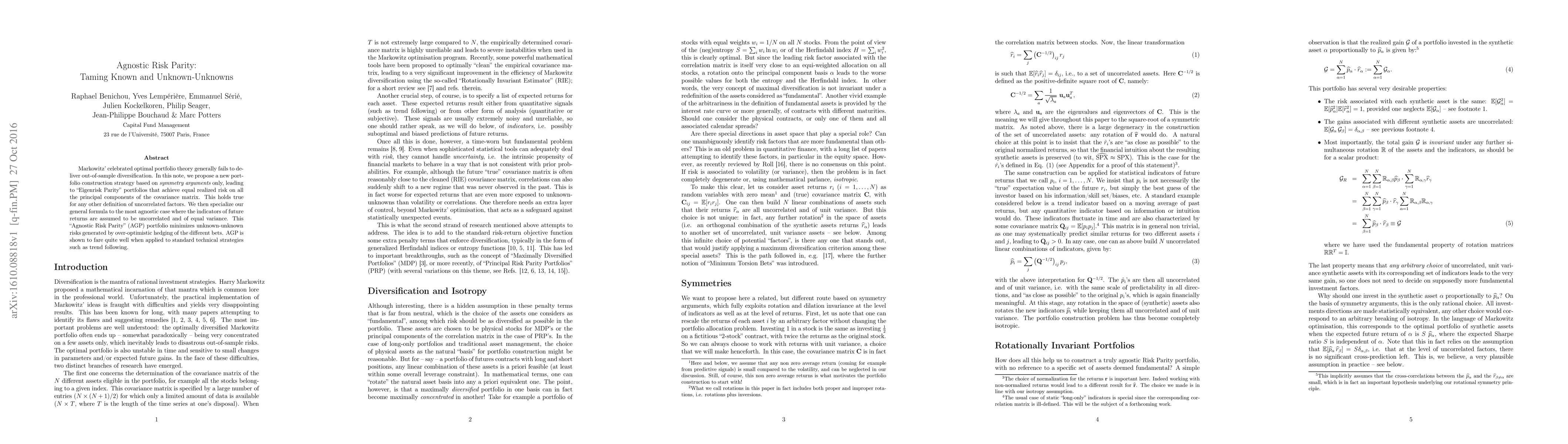 A new portfolio construction strategy called Agnostic Risk Parity aims to achieve equal realized risk across principal components, reducing unknown-unknown risks and improving out-of-sample diversification.