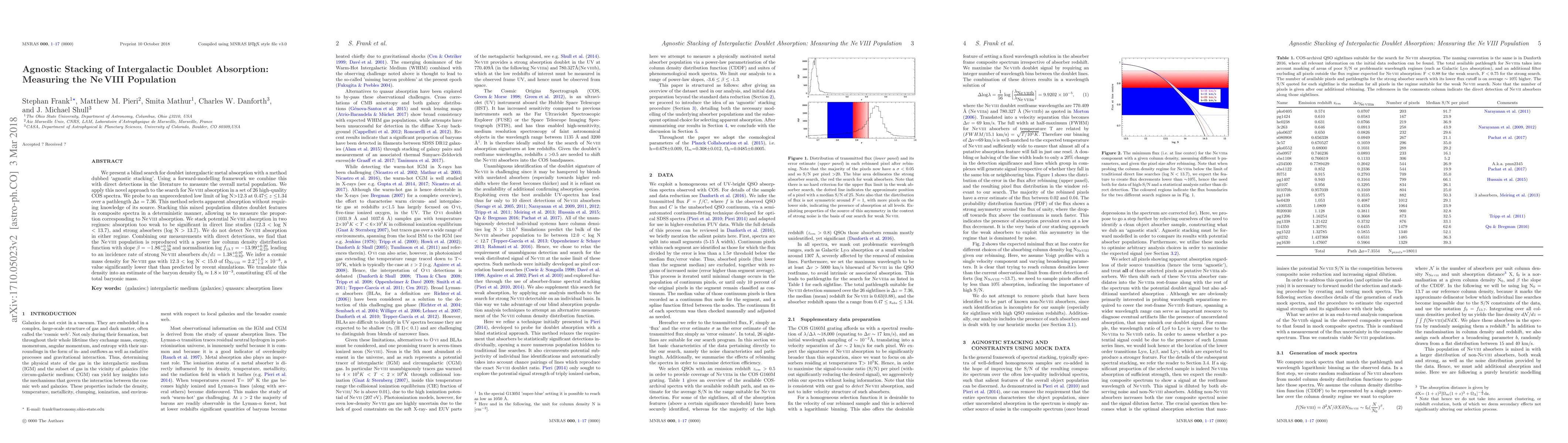 We present a blind search for doublet intergalactic metal absorption with a method dubbed `agnostic stacking'. Using a forward-modelling framework we combine this with direct detections in the literature to measure the overall metal population. We apply this novel approach to the search for NeVIII absorption in a set of 26 high-quality COS spectra. We probe to an unprecedented low limit of log N$>$12.3 at 0.47$\leq z \leq$1.34 over a pathlength $\Delta$z = 7.36. This method selects apparent absorption without requiring knowledge of its source. Stacking this mixed population dilutes doublet features in composite spectra in a deterministic manner, allowing us to measure the proportion corresponding to NeVIII absorption. We stack potential NeVIII absorption in two regimes: absorption too weak to be significant in direct line studies (12.3 $<$ log N $<$ 13.7), and strong absorbers (log N $>$ 13.7). We do not detect NeVIII absorption in either regime. Combining our measurements with direct detections, we find that the NeVIII population is reproduced with a power law column density distribution function with slope $\beta = -1.86 \substack{+0.18 \\ -0.26}$ and normalisation log $f_{13.7} = -13.99 \substack{+0.20 \\ -0.23}$, leading to an incidence rate of strong NeVIII absorbers $dn/dz =1.38 \substack{+0.97 \\ -0.82}$. We infer a cosmic mass density for NeVIII gas with 12.3 $<$ log N $<$ 15.0 of $\Omega _{NeVIII} = 2.2 \substack{+1.6 \\ _-1.2} \times 10^{-8}$, a value significantly lower that than predicted by recent simulations. We translate this density into an estimate of the baryon density $\Omega _{b} \approx 1.8 \times 10^{-3}$, constituting 4\% of the total baryonic mass.