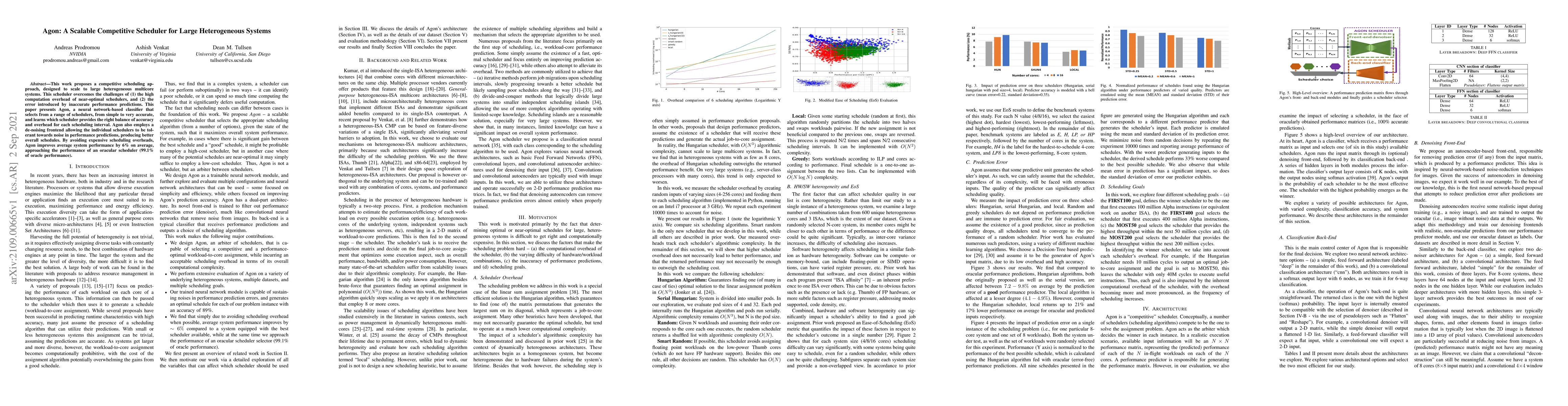 Agon is a scalable, neural network-based scheduler for large heterogeneous systems that selects optimal schedulers based on accuracy and overhead. It enhances performance by 6% on average, approaching the efficiency of an ideal scheduler.