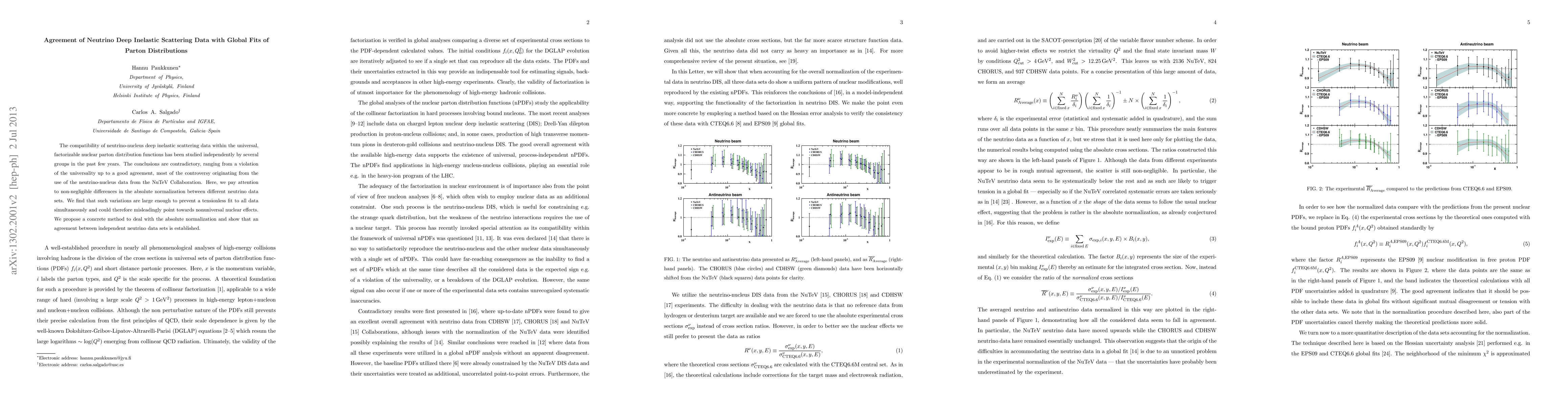 The compatibility of neutrino-nucleus deep inelastic scattering data within the universal, factorizable nuclear parton distribution functions has been studied independently by several groups in the past few years. The conclusions are contradictory, ranging from a violation of the universality up to a good agreement, most of the controversy originating from the use of the neutrino-nucleus data from the NuTeV Collaboration. Here, we pay attention to non-negligible differences in the absolute normalization between different neutrino data sets. We find that such variations are large enough to prevent a tensionless fit to all data simultaneously and could therefore misleadingly point towards nonuniversal nuclear effects. We propose a concrete method to deal with the absolute normalization and show that an agreement between independent neutrino data sets is established.