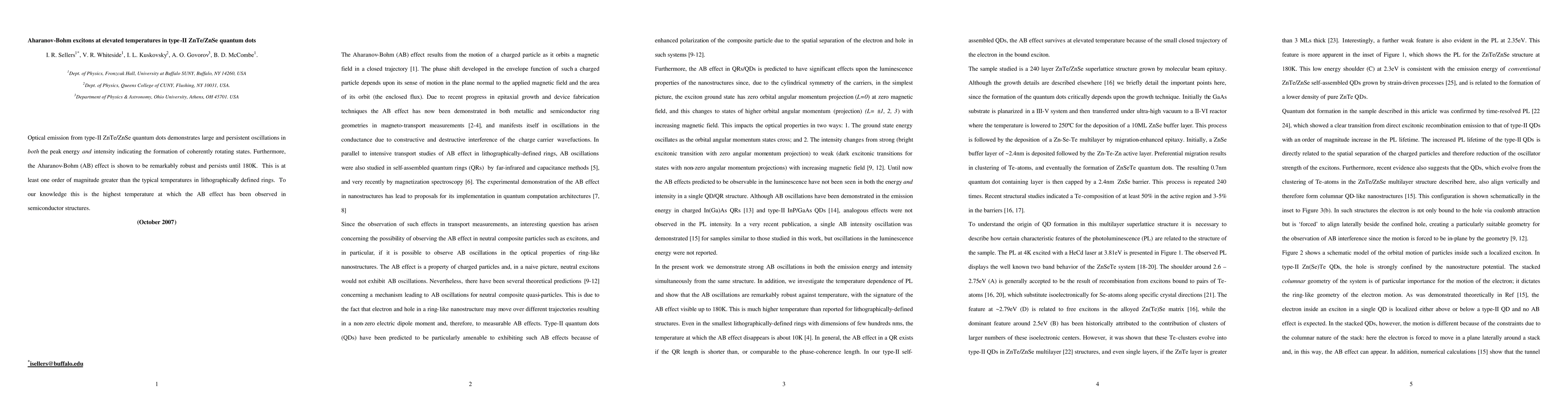 This study reveals large and persistent oscillations in optical emission from ZnTe/ZnSe type-II quantum dots, indicating coherently rotating exciton states. The Aharonov-Bohm effect persists up to 180K, marking the highest temperature observed for this phenomenon in semiconductor structures.