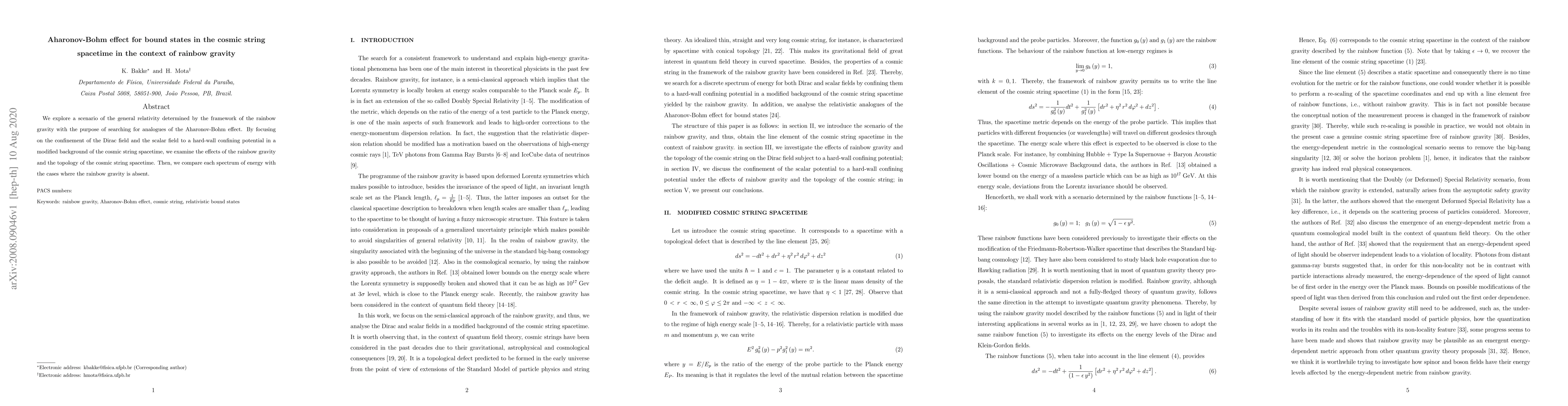 We explore a scenario of the general relativity determined by the framework of the rainbow gravity with the purpose of searching for analogues of the Aharonov-Bohm effect. By focusing on the confinement of the Dirac field and the scalar field to a hard-wall confining potential in a modified background of the cosmic string spacetime, we examine the effects of the rainbow gravity and the topology of the cosmic string spacetime. Then, we compare each spectrum of energy with the cases where the rainbow gravity is absent.