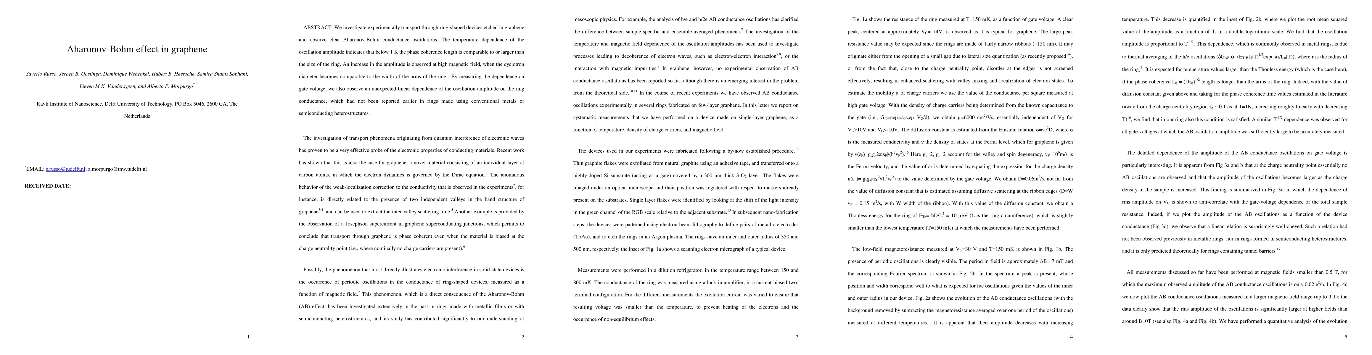Researchers observed Aharonov-Bohm conductance oscillations in ring-shaped graphene devices, with temperature-dependent amplitude that increased at high magnetic fields. The findings also revealed a surprising linear dependence of the oscillation amplitude on the ring's conductance.