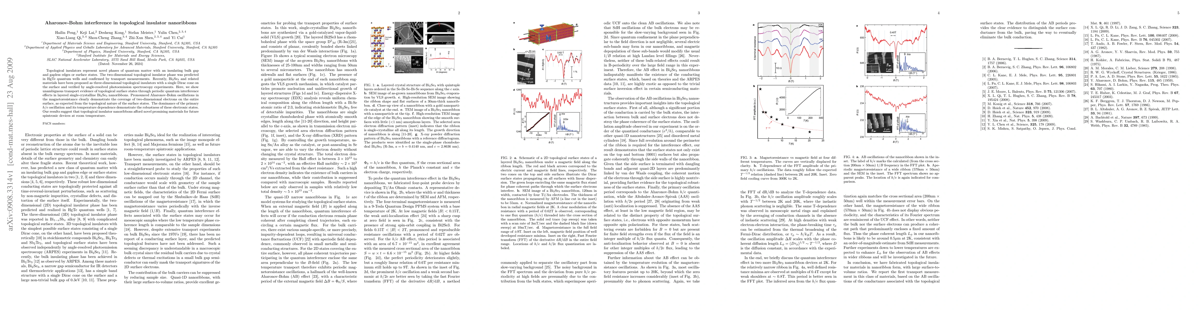 This paper demonstrates Aharonov-Bohm oscillations in Bi2Se3 nanoribbons, providing clear evidence of topological surface states and suggesting these materials could be promising for future spintronic applications at room temperature. The robustness of these states is highlighted by the primary h/e oscillation and its temperature dependence.