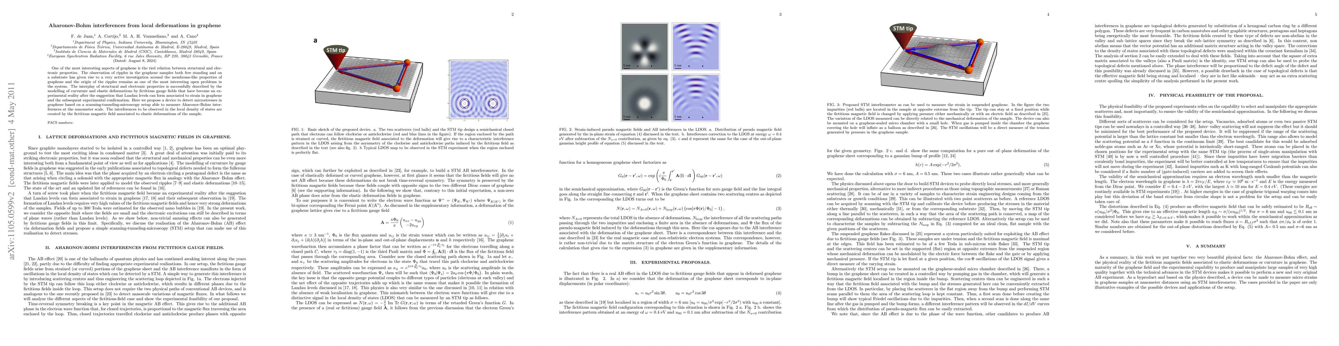 This paper proposes a scanning-tunneling-microscopy device to detect microstresses in graphene by observing Aharonov-Bohm interferences, which arise from the fictitious magnetic field generated by the sample's elastic deformations. The study highlights the interplay between graphene's structural and electronic properties through the modeling of curvature and strain.