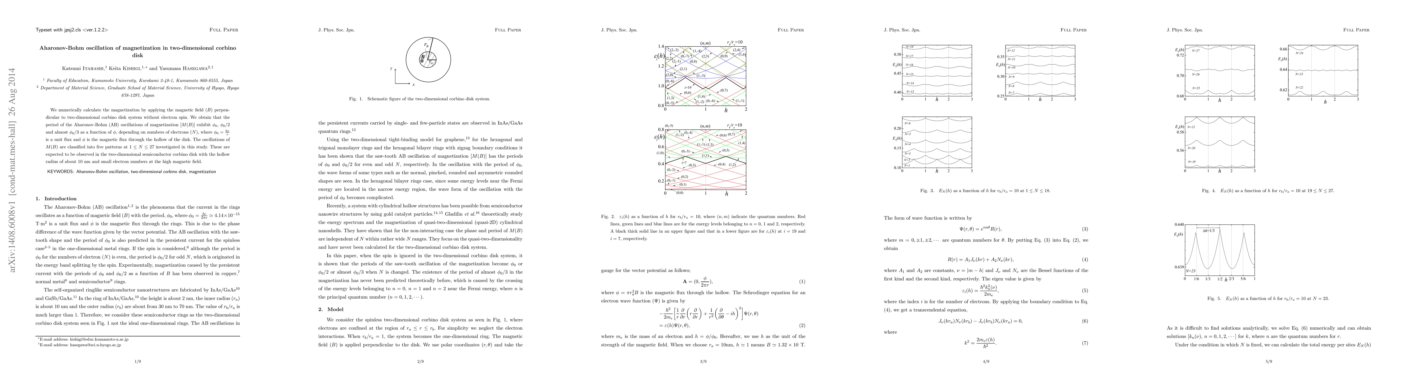 We numerically calculate the magnetization by applying the magnetic field ($B$) perpendicular to two-dimensional corbino disk system without electron spin. We obtain that the period of the Aharonov-Bohm (AB) oscillations of magnetization $[M(B)]$ exhibit $\phi_0$, $\phi_0/2$ and almost $\phi_0/3$ as a function of $\phi$, depending on numbers of electrons ($N$), where $\phi_0=\frac{hc}{e}$ is a unit flux and $\phi$ is the magnetic flux through the hollow of the disk. The oscillations of $M(B)$ are classified into five patterns at $1\leq N\leq 27$ investigated in this study. These are expected to be observed in the two-dimensional semiconductor corbino disk with the hollow radius of about 10 nm and small electron numbers at the high magnetic field.