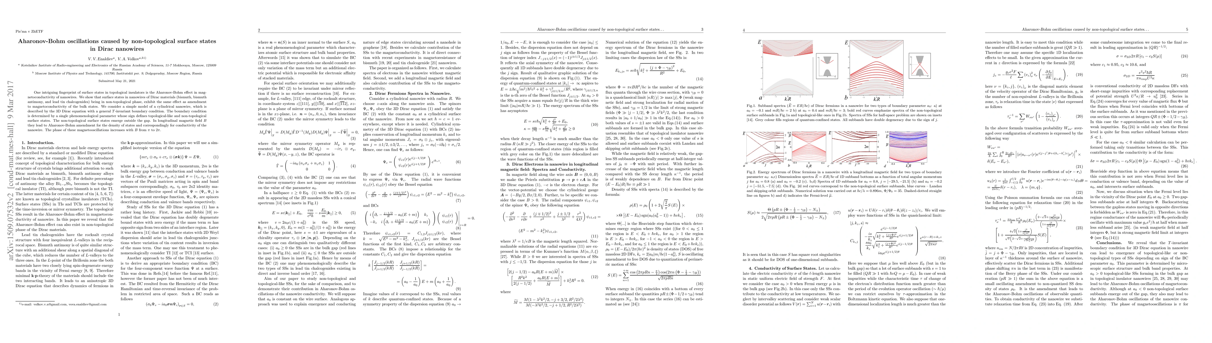 Summary: The paper demonstrates Aharonov-Bohm oscillations in Dirac nanowires with non-topological surface states, akin to topological insulators, resulting in magnetoconductivity amendments due to a phenomenological boundary condition parameter. The phase of these oscillations changes from $\pi$ to $2\pi$ with increasing magnetic field.