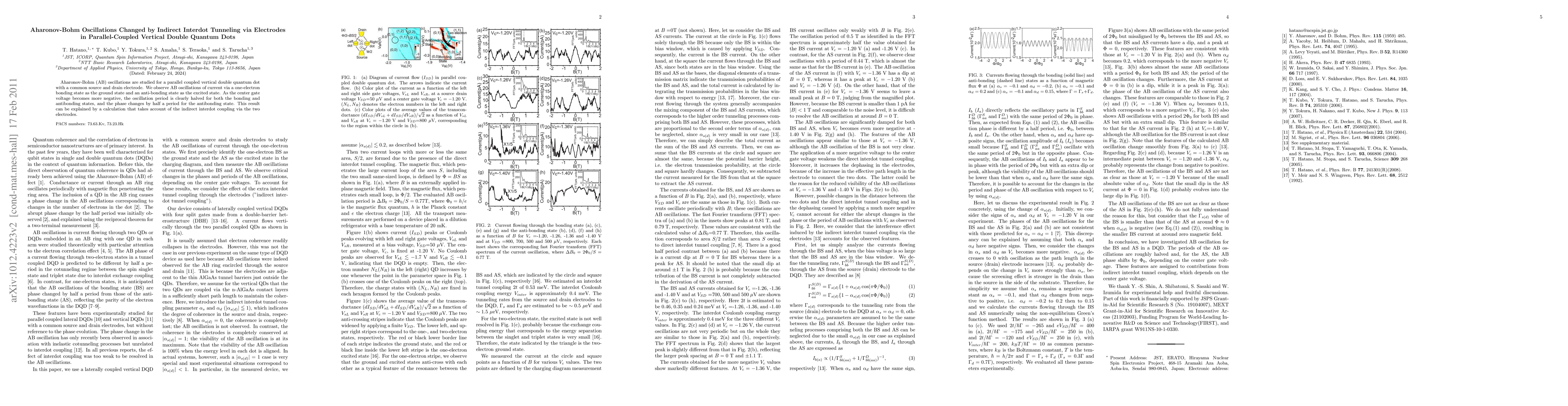 Aharonov-Bohm (AB) oscillations are studied for a parallel coupled vertical double quantum dot with a common source and drain electrode. We observe AB oscillations of current via a one-electron bonding state as the ground state and an anti-bonding state as the excited state. As the center gate voltage becomes more negative, the oscillation period is clearly halved for both the bonding and antibonding states, and the phase changes by half a period for the antibonding state. This result can be explained by a calculation that takes account of the indirect interdot coupling via the two electrodes.