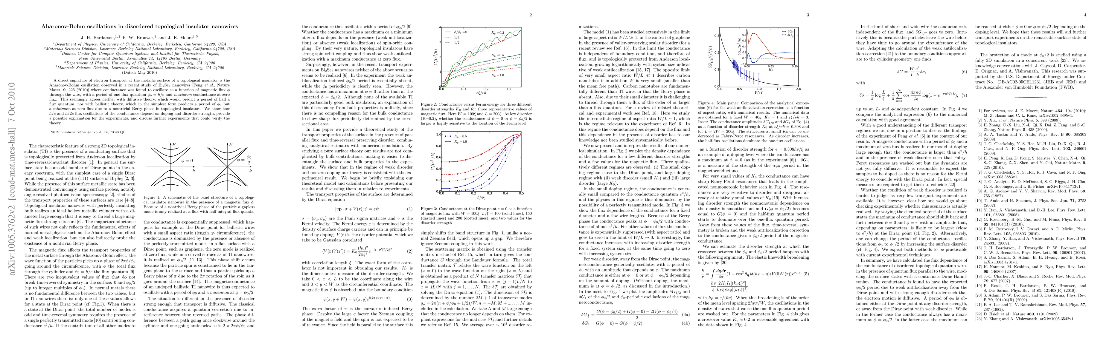 This study investigates Aharonov-Bohm oscillations in disordered topological insulator nanowires, revealing conductance oscillations with a period of one flux quantum that neither align with diffusive nor ballistic theories. The research provides an explanation for these oscillations based on doping and disorder, and suggests further experiments to verify the theoretical model.