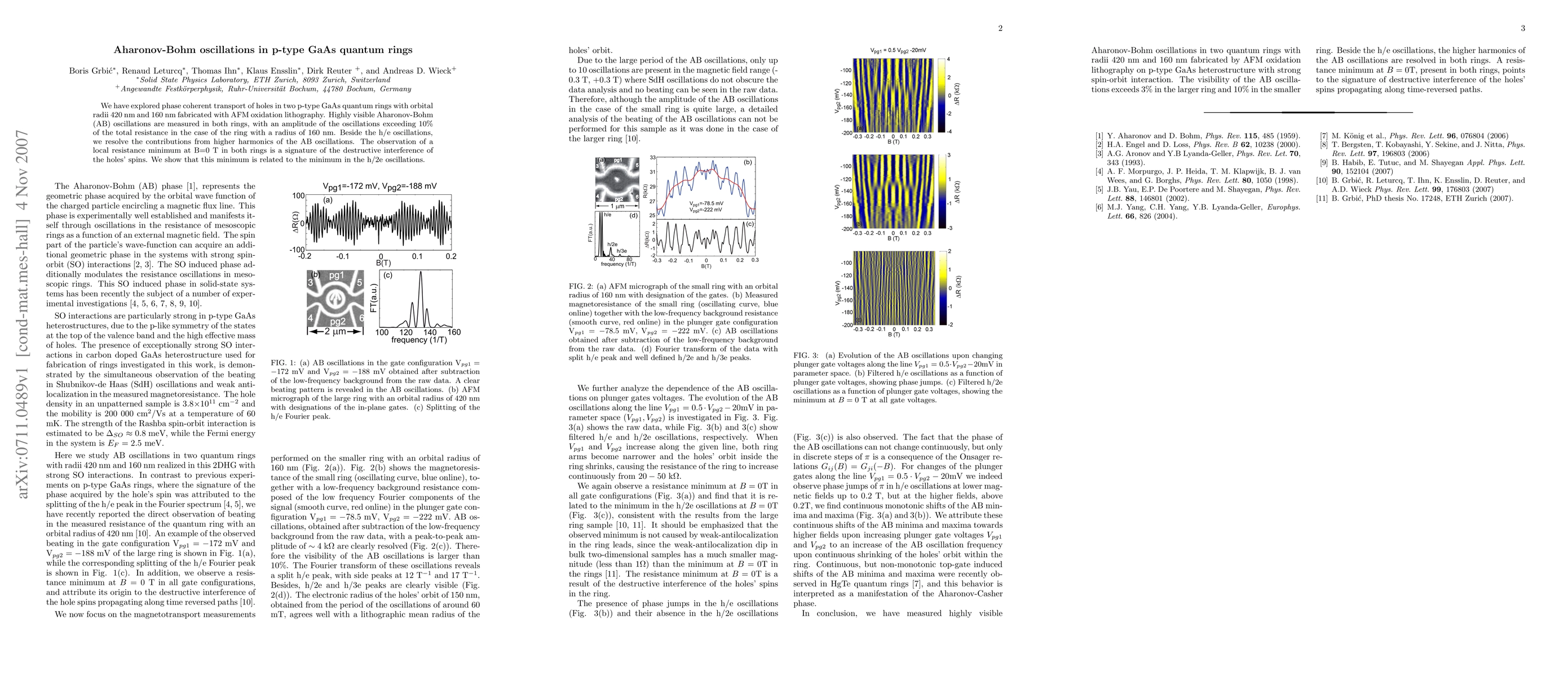 This study investigates phase-coherent transport of holes in two p-type GaAs quantum rings, revealing highly visible Aharonov-Bohm oscillations with amplitudes exceeding 10% of the total resistance in the smaller ring. The research also identifies higher harmonics of the AB oscillations and a local resistance minimum at B=0 T, indicating destructive interference of hole spins.
