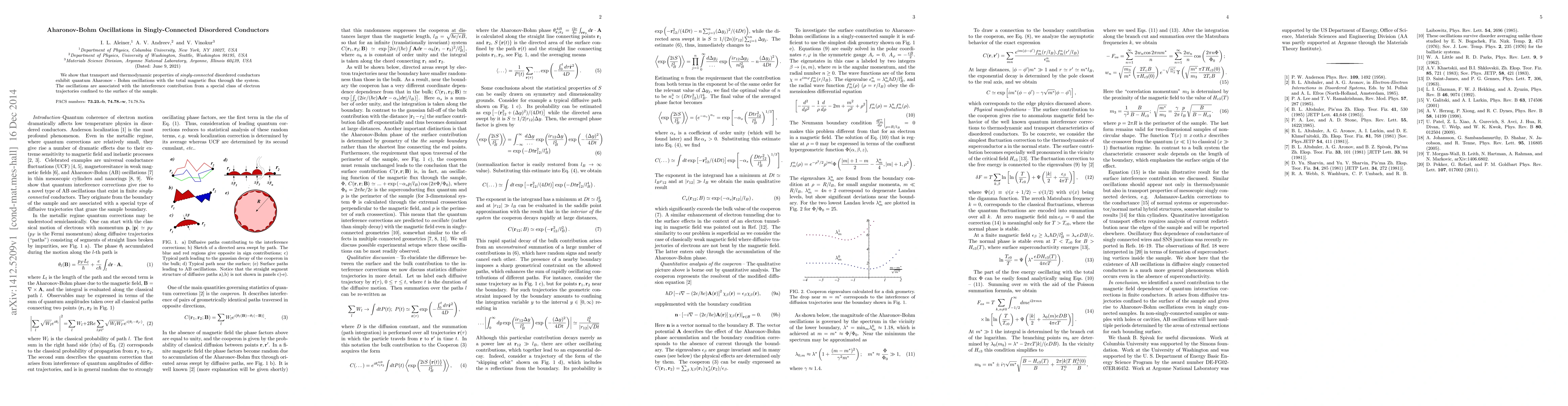 This paper demonstrates that singly-connected disordered conductors display quantum Aharonov-Bohm oscillations in their transport and thermodynamic properties, driven by interference from electron trajectories confined to the sample's surface.