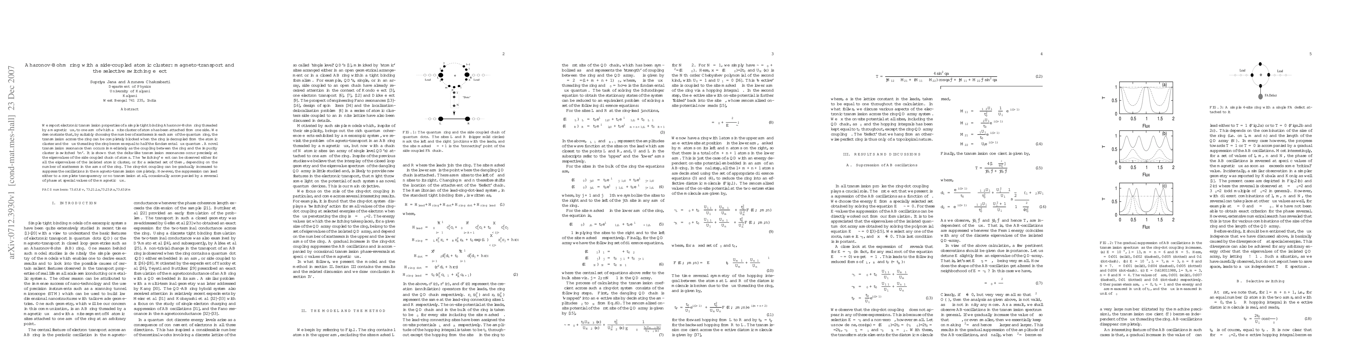 This paper investigates the magneto-transport properties of an Aharonov-Bohm ring with a side-coupled atomic cluster, demonstrating selective switching effects where transmission can be completely blocked or fully restored by tuning the number of scatterers and coupling strength. The study reveals that the transmission resonances align with the eigenvalues of the atomic cluster, and the switching effect can be controlled to target specific resonances or suppress oscillations entirely.