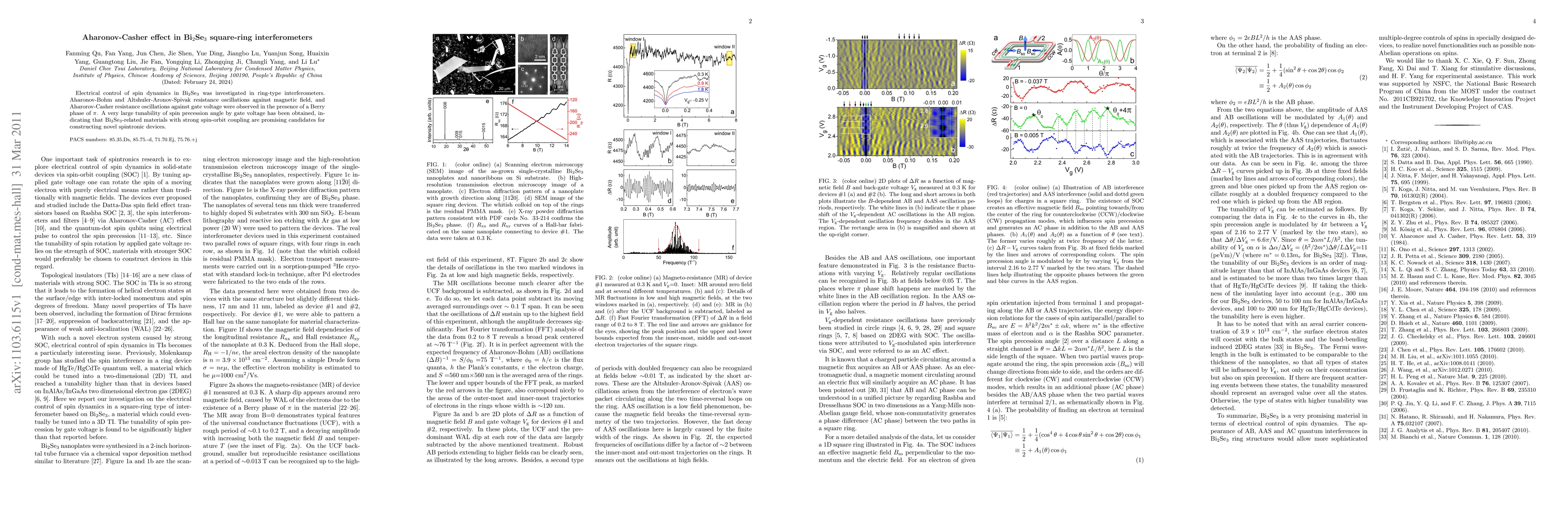 Electrical control of spin dynamics in Bi$_{\rm 2}$Se$_{\rm 3}$ was investigated in ring-type interferometers. Aharonov-Bohm and Altshuler-Aronov-Spivak resistance oscillations against magnetic field, and Aharorov-Casher resistance oscillations against gate voltage were observed in the presence of a Berry phase of $\pi$. A very large tunability of spin precession angle by gate voltage has been obtained, indicating that Bi$_{\rm 2}$Se$_{\rm 3}$-related materials with strong spin-orbit coupling are promising candidates for constructing novel spintronic devices.