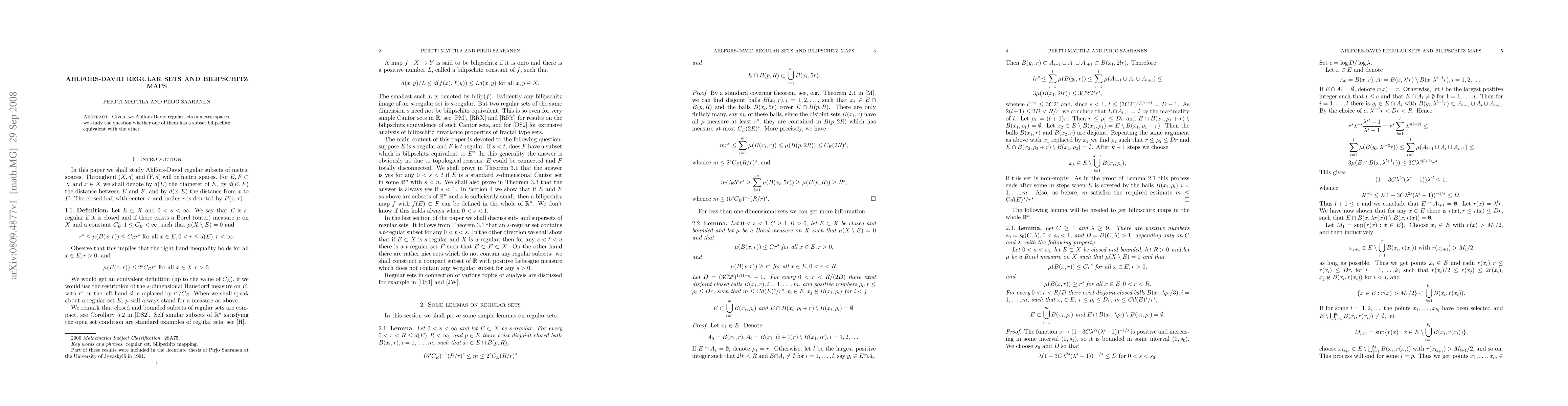 Summary: This paper investigates the possibility of bilipschitz equivalence between subsets of two Ahlfors-David regular sets in metric spaces, exploring the structural properties that allow such mappings.