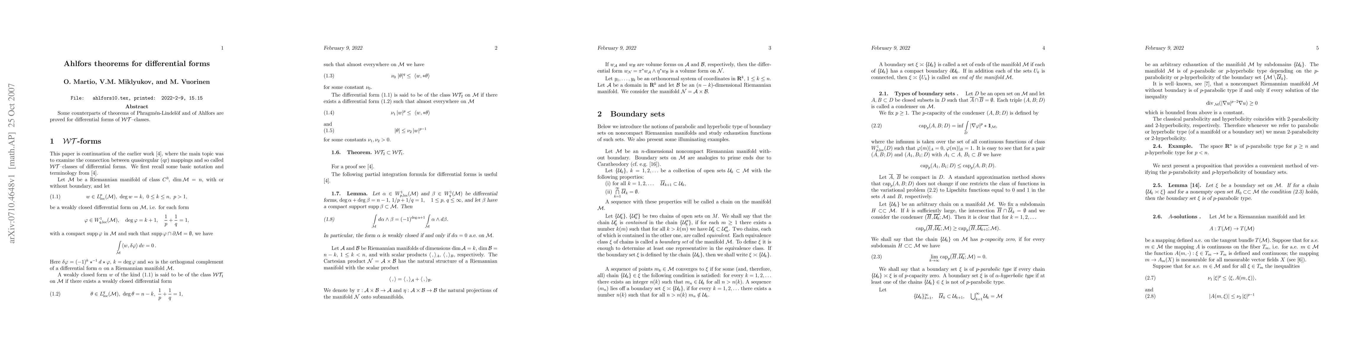Some counterparts of theorems of Phragm\'en-Lindel\"of and of Ahlfors are proved for differential forms of ${\cal WT}$--classes.}