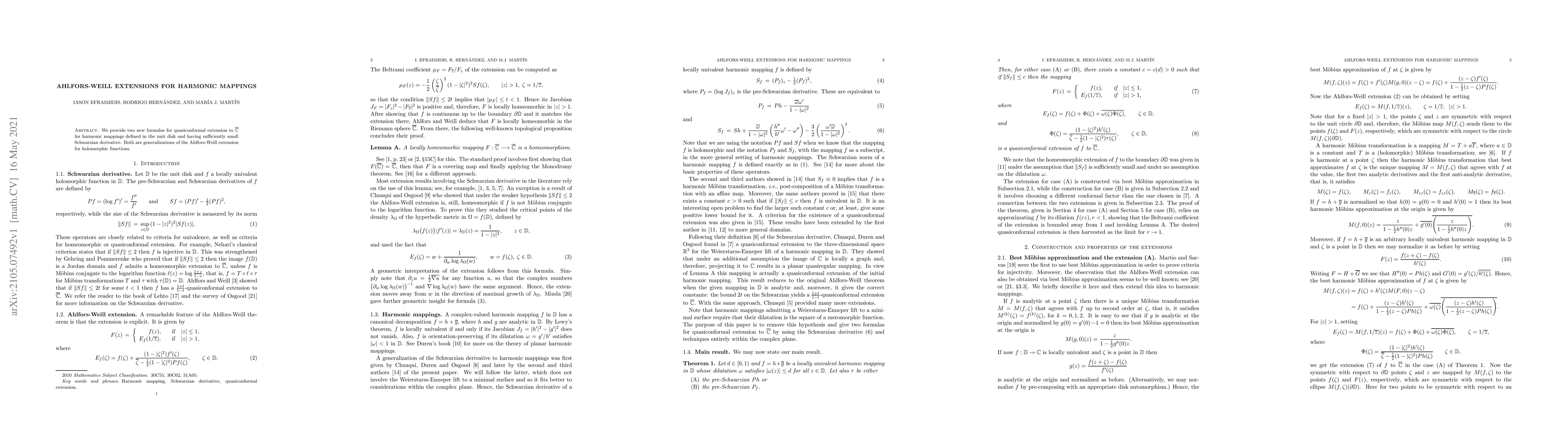 We provide two new formulas for quasiconformal extension to $\overline{\mathbb{C}}$ for harmonic mappings defined in the unit disk and having sufficiently small Schwarzian derivative. Both are generalizations of the Ahlfors-Weill extension for holomorphic functions.