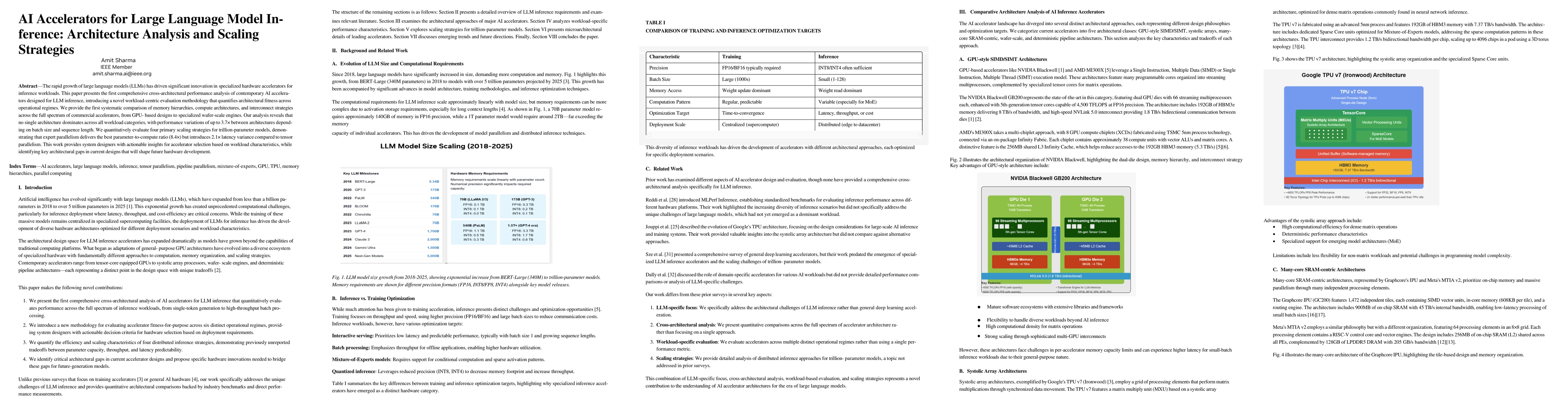 The paper presents a comprehensive analysis of AI accelerators for large language model inference, focusing on architecture, performance, and scaling strategies for trillion-parameter models.