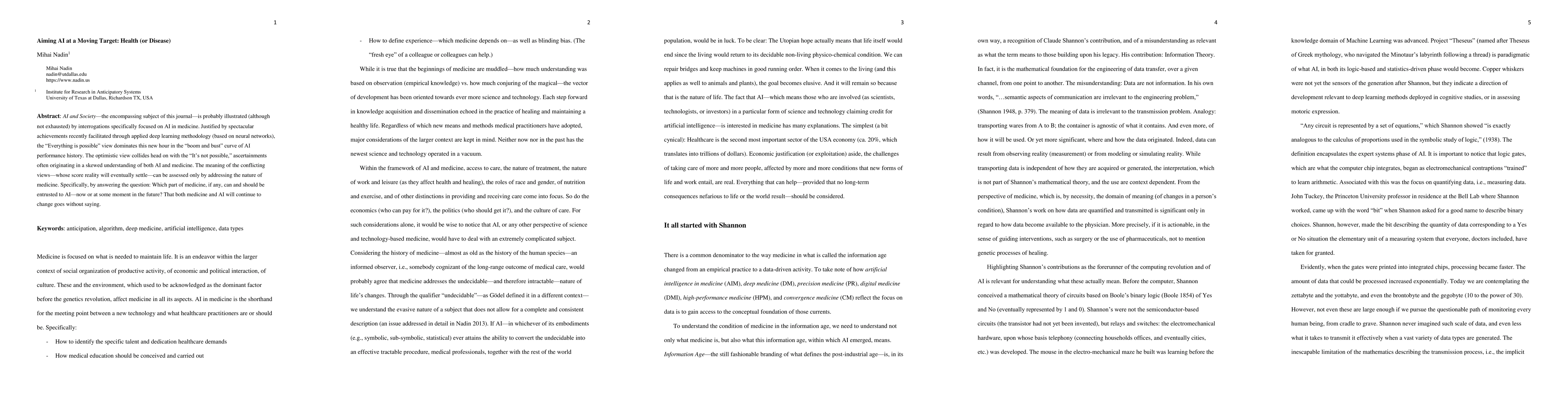 The paper discusses the intersection of AI and medicine, focusing on the role of data and interpretation in medical diagnosis and treatment, without specifying a particular research methodology.