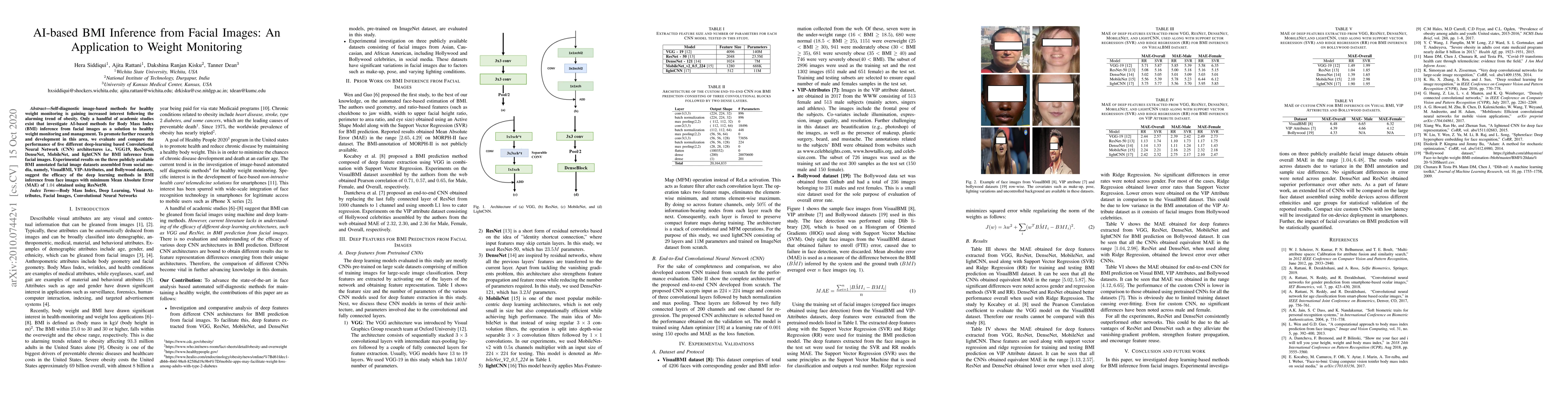 This paper evaluates five deep-learning CNN architectures for inferring Body Mass Index (BMI) from facial images, finding ResNet50 to be the most effective with a minimum Mean Absolute Error of $1.04$. The study aims to promote research in AI-based self-diagnostic methods for healthy weight monitoring.