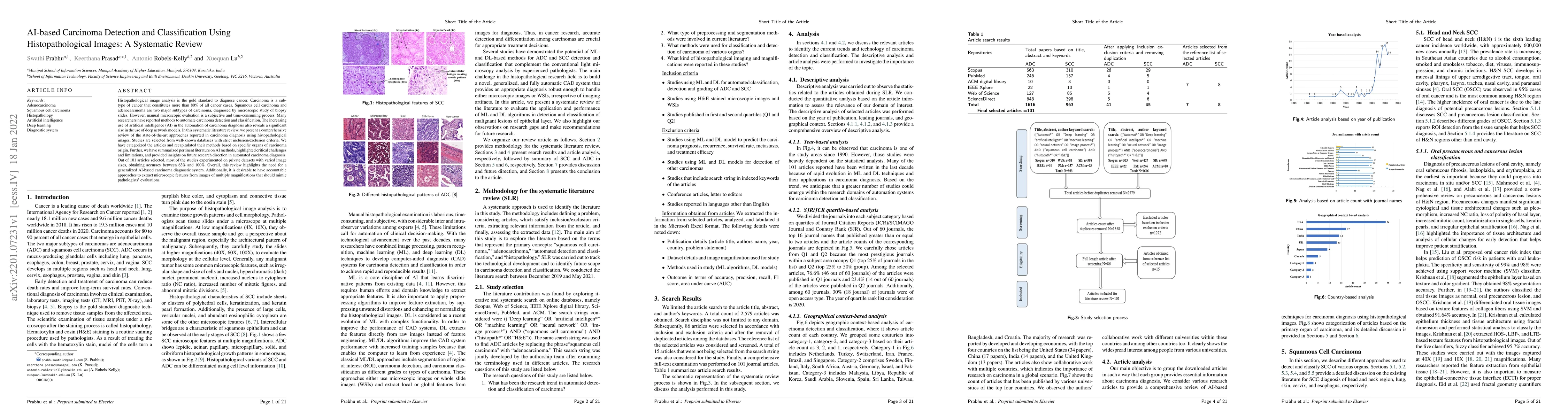 This systematic review examines AI-based methods for detecting and classifying carcinoma using histopathological images, highlighting the challenges and limitations in current approaches. It emphasizes the need for generalized diagnostic systems and more accountable methods for feature extraction across different magnifications.
